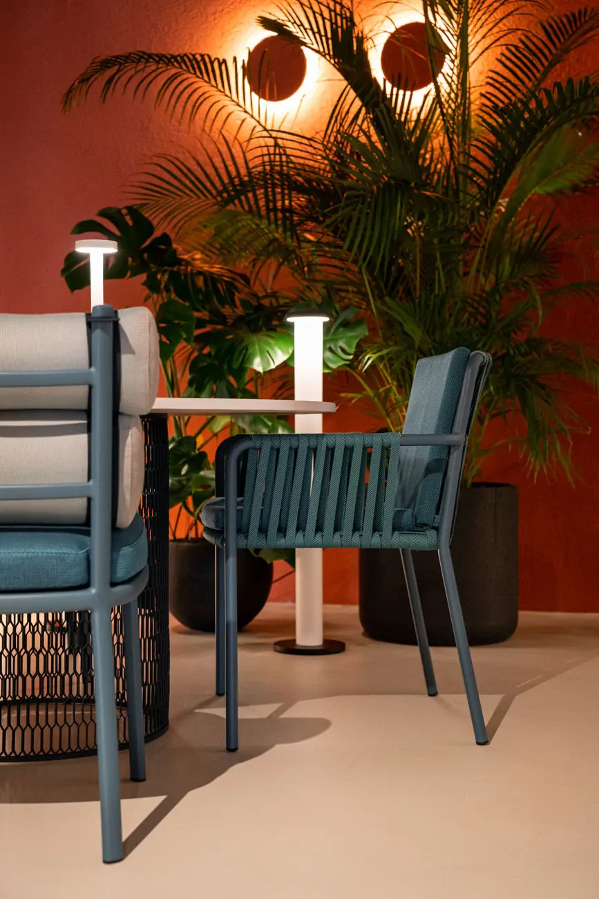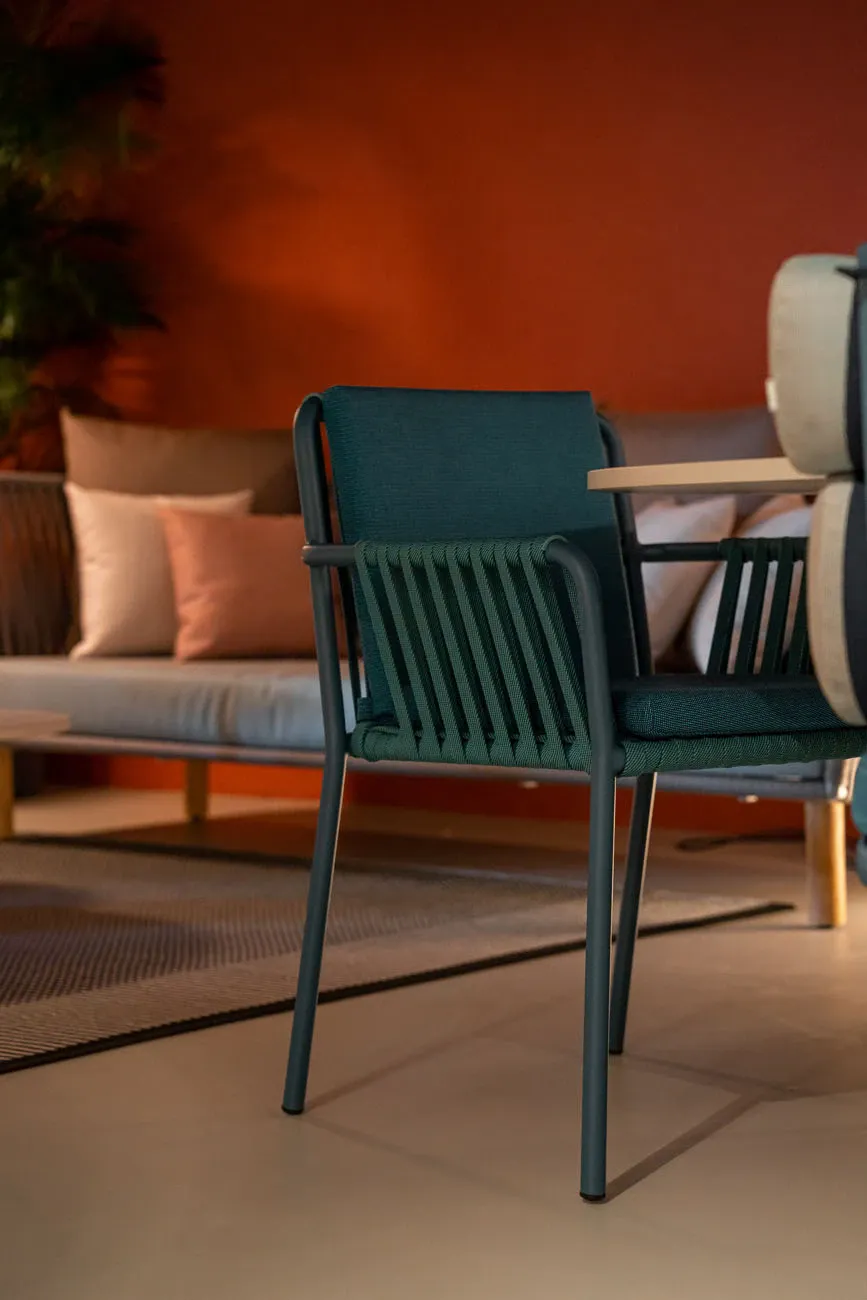 Net è una poltrona da pranzo progettata dai designer di Kettal Studio per l'omonimo marchio. Una collezione delicata, elementi d'arredo composti da trame di corde e tubi di alluminio per sedute dallo stile moderno e leggero. Impilabile fino a quattro pezzi. Proporzioni perfette e studio dei materiali da parte del team di designer Kettal sono alla base della collezione estiva Net. Struttura in alluminio in varie texture che grazie alla sua ergonomia favorisce il comfort di chi la utilizza. Realizzata con robusti intrecci di corde in diverse tonalità. Stessa tonalità per il cuscino dello schienale/seduta. Componete la vostra seduta Net perfetta per la terrazza e il giardino.