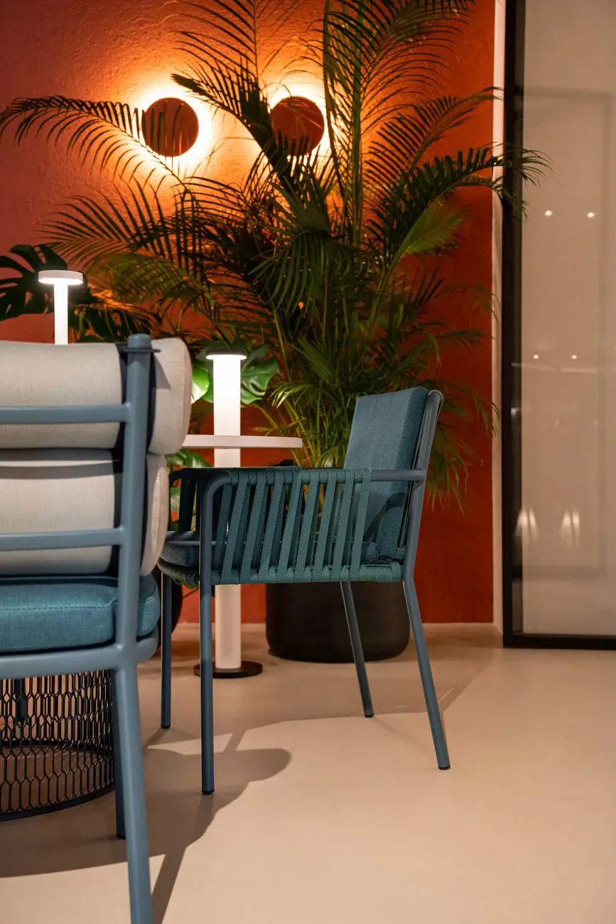 Net è una poltrona da pranzo progettata dai designer di Kettal Studio per l'omonimo marchio. Una collezione delicata, elementi d'arredo composti da trame di corde e tubi di alluminio per sedute dallo stile moderno e leggero. Impilabile fino a quattro pezzi. Proporzioni perfette e studio dei materiali da parte del team di designer Kettal sono alla base della collezione estiva Net. Struttura in alluminio in varie texture che grazie alla sua ergonomia favorisce il comfort di chi la utilizza. Realizzata con robusti intrecci di corde in diverse tonalità. Stessa tonalità per il cuscino dello schienale/seduta. Componete la vostra seduta Net perfetta per la terrazza e il giardino.