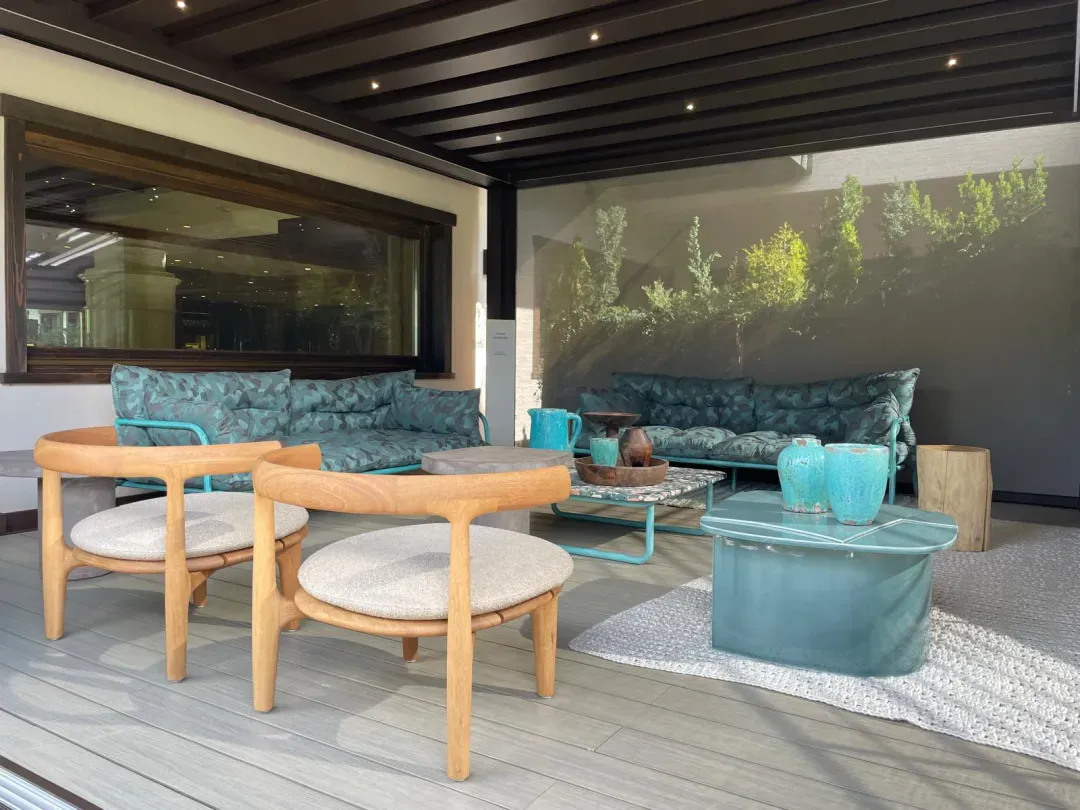 La collezione Himba è caratterizzata dall'essenza in iroko naturale sabbiato e dalle finiture a olio che ne aumentano la resistenza, perfette per giardini, patii o bordi piscina anche durante le stagioni fredde. Il massello di frassino sabbiato tinto nero definisce la silhouette di divani, poltrone, tavoli e tavolini per gli ambienti indoor.