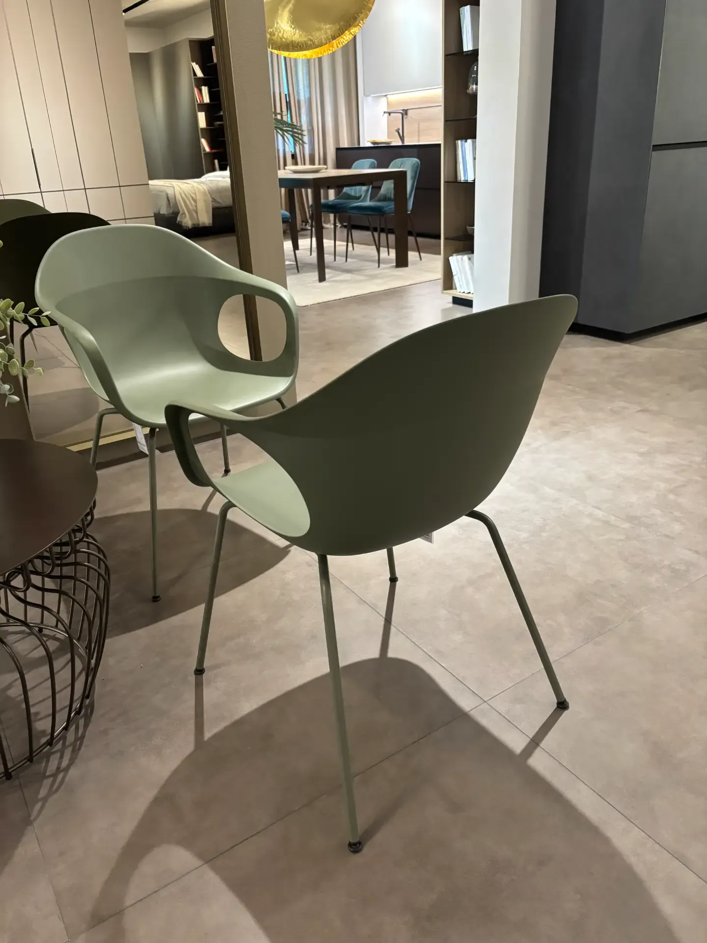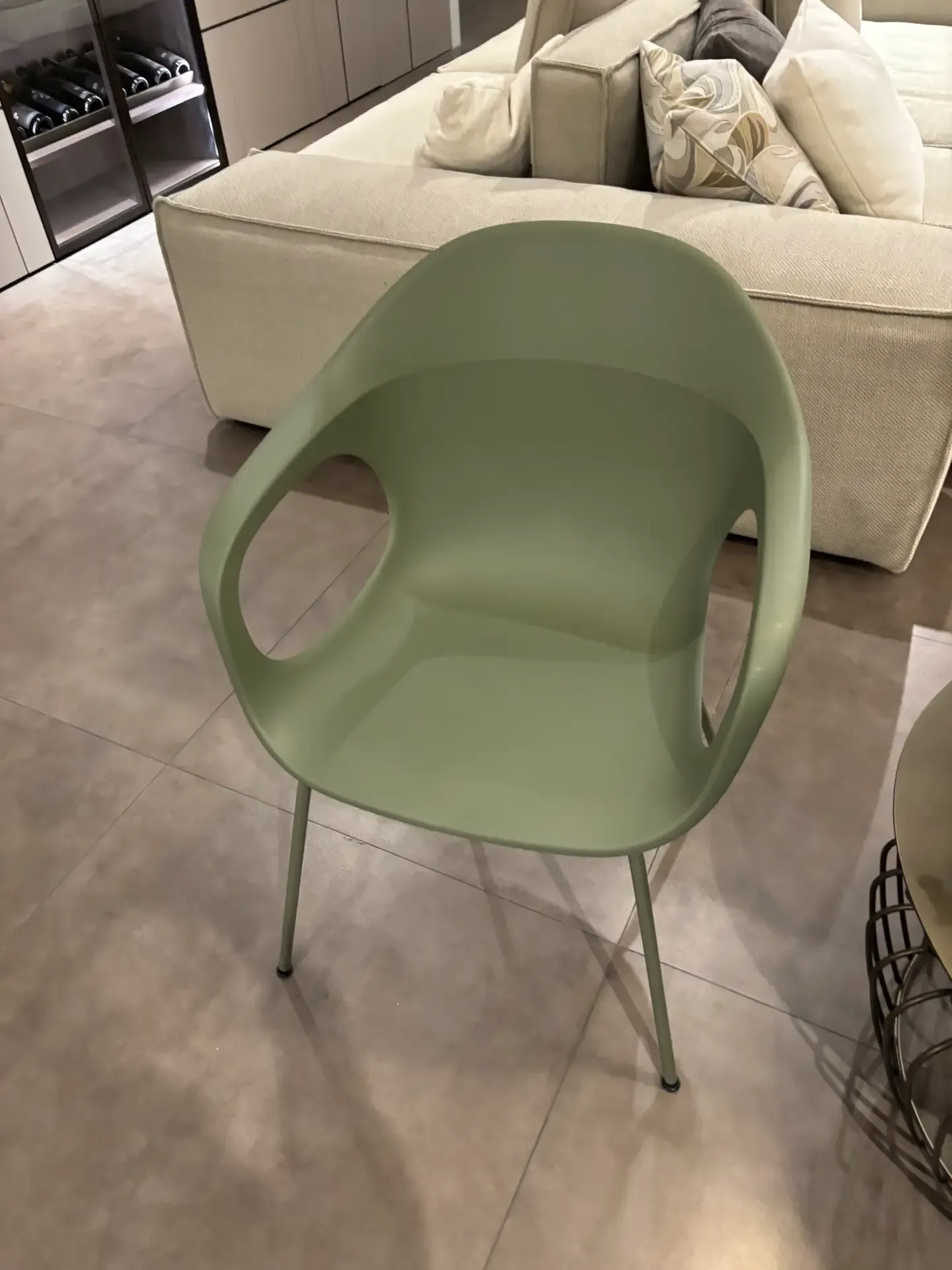 Poltroncina Kristalia ELEPHANTINO C-scocca aperta su 4 gambe ferro scocca agave PP16 struttura verniciata agave