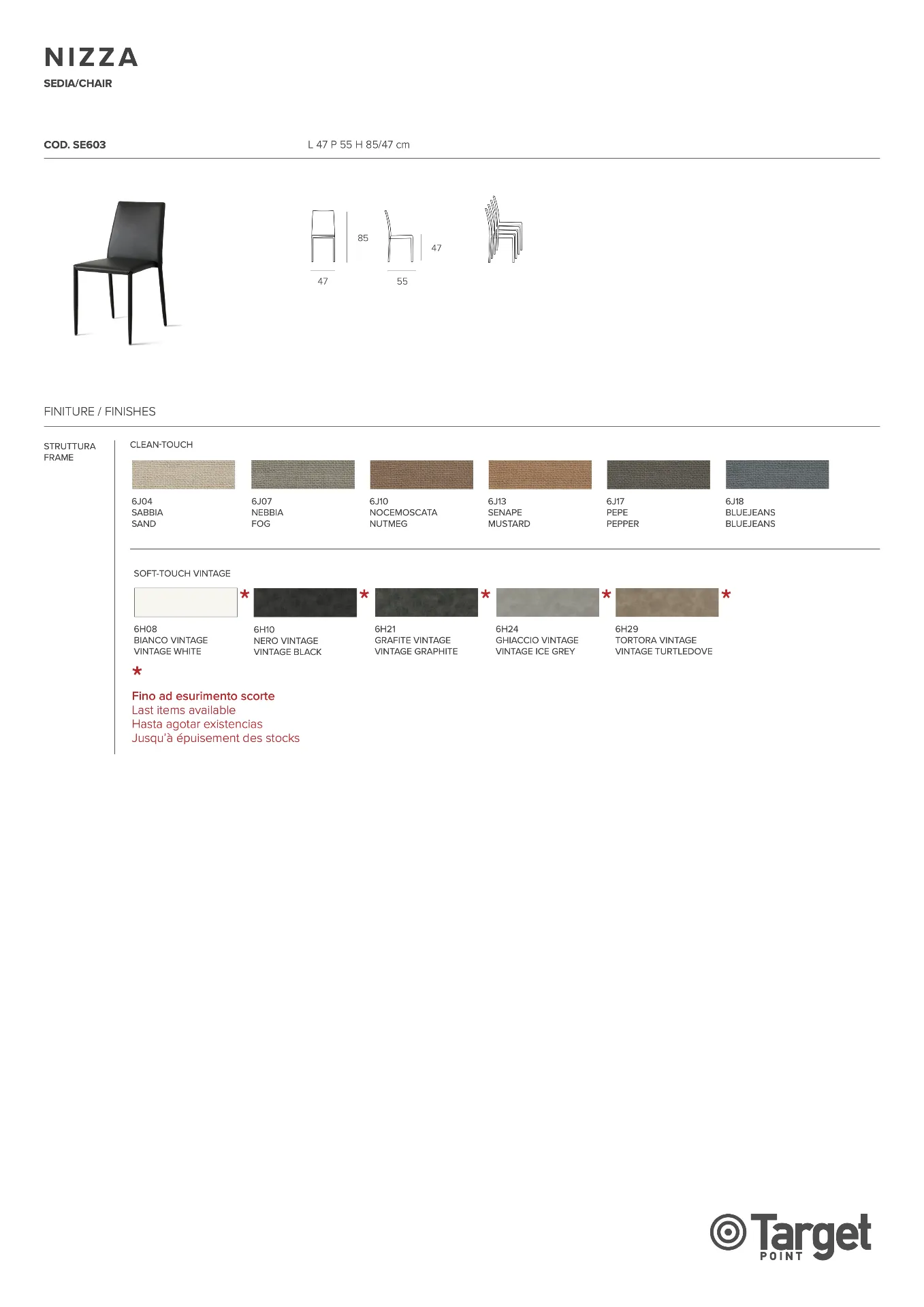 Opta per la sedia Target point Da cucina scontata tra tutte quelle in Tessuto che distribuiamo, in quanto saprà soddisfare ogni richiesta di stile e spazio: Nizza è moderna, perciò sarà in grado di ricreare in casa i particolari atmosfere in cui desideri crogiolarti. Se gli spazi indoor a disposizione non ti concedono di posizionare le soluzioni dei tuoi desideri, non lasciarti scoraggiare: non si trascura mai l'aspetto estetico dei locali durante l'acquisto degli arredi e i brand Target point lo sa bene. Per far fronte a problematiche di stile e spazio, noi lavoriamo con molta passione al fine di farti vedere sedie di qualsiasi tipologia, come questa sedia senza braccioli, che siano in grado di adattarsi alle necessità personali. Le zone della casa, dalla cucina alla zona notte, si differenziano tra loro non solo in base a design e contenuto estetico, ma anche per utilità e per disposizione dei pezzi di arredo, per tale motivo è fondamentale l'acquisto degli stessi; ogni stanza necessita di mobili che siano stati progettati appositamente, ad esempio questa sedia Nizza è da cucina. Funzionalità e stile sono gli elementi che contraddistinguono la sedia Nizza in tessuto, in quanto realizzata in materiali di qualità e che resistano, sempre garantiti dalla pluriennale esperienza Target point nel settore dell'arredamento.