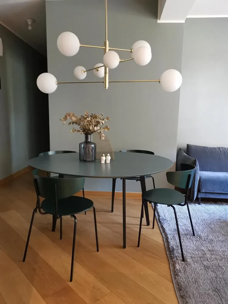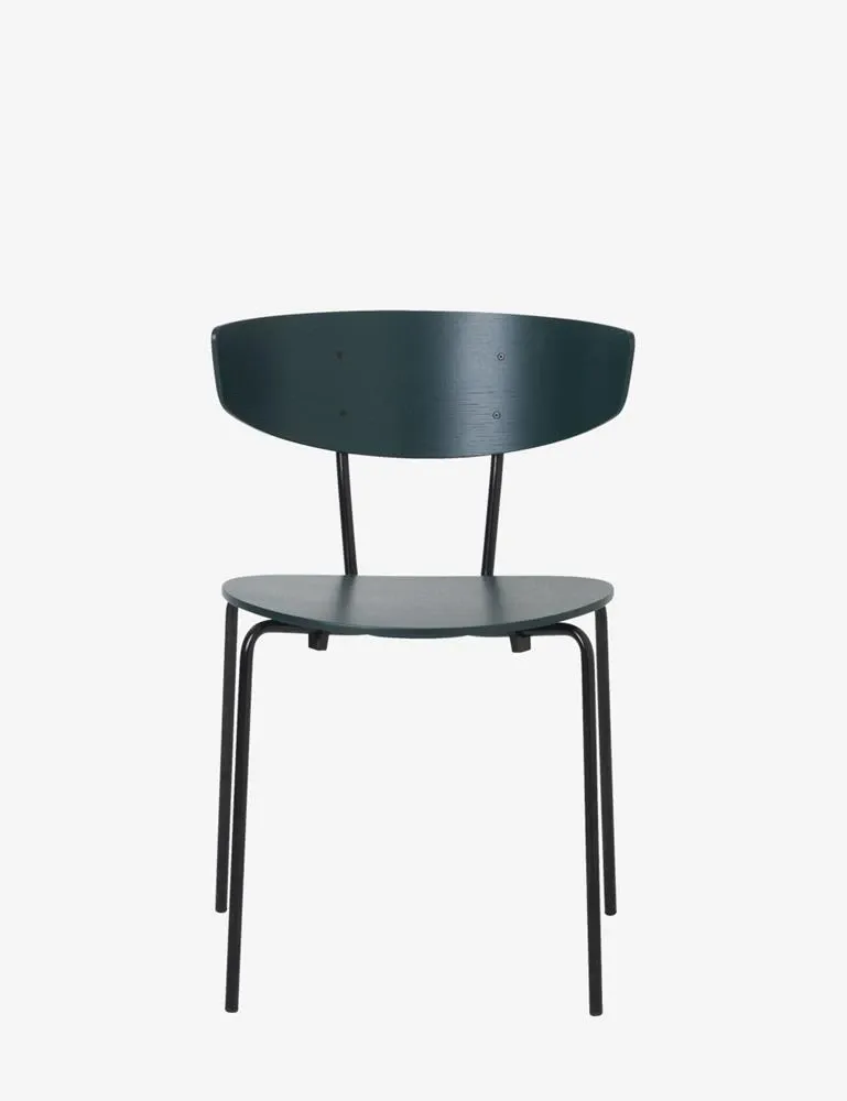 Nr. 4 sedie Herman Chair by Ferm living in impiallacciato frassino verniciato colore verde scuro, struttura metallica nera. Seduta estremamente confortevole grazie anche allo schienale stondato avvolgente. Perfetta per donare un tocco di colore elegante alla sala da pranzo o allo studio. E' possibile ordinarne altri pezzi con condizioni differenti dalla presente promo.
