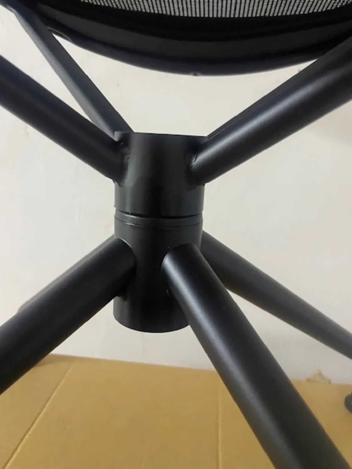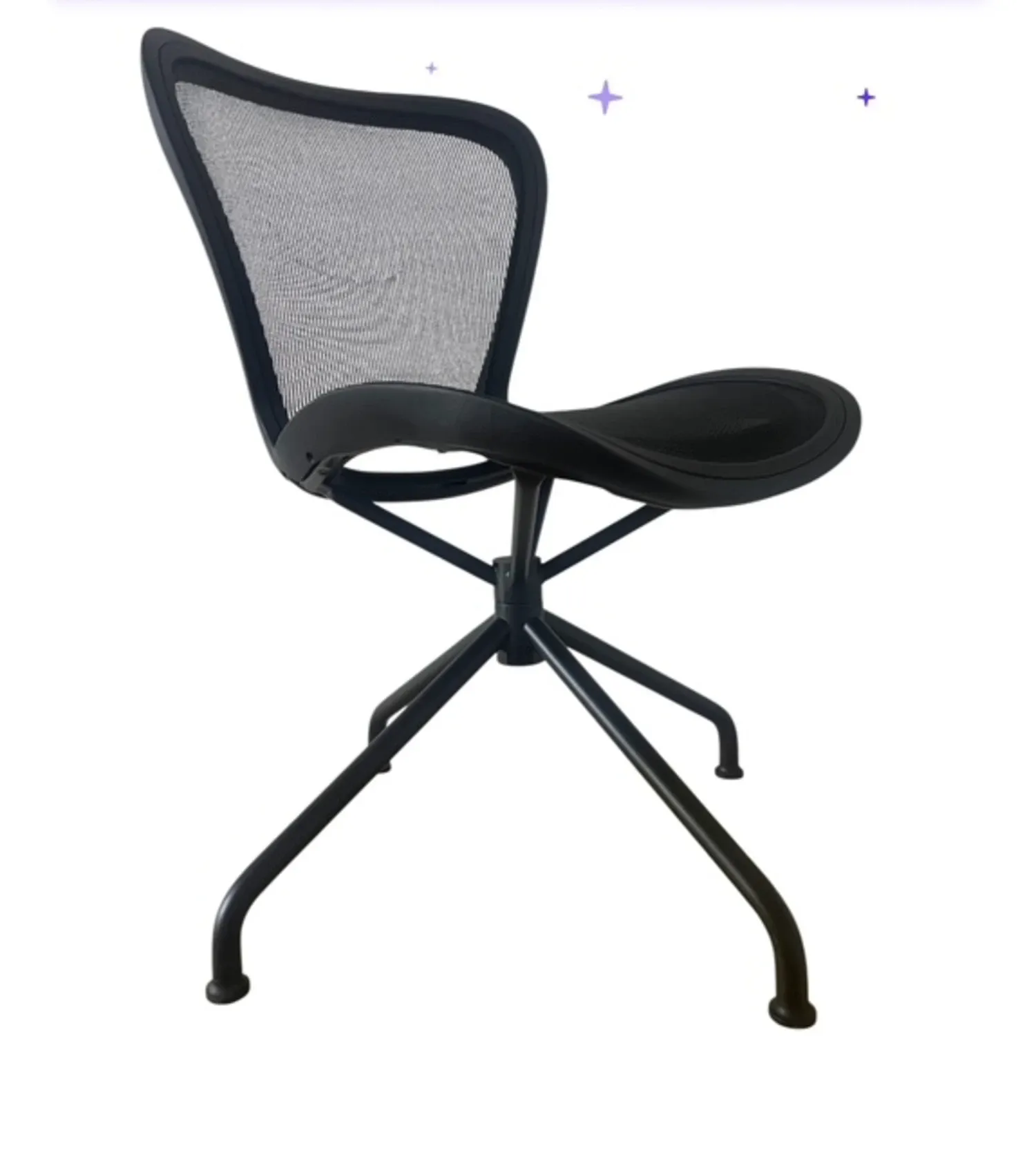 Sedia senza braccioli girevole su 4 gambe. Girevole ma non regolabile.. Struttura in tubo di acciaio verniciato in resina epossidica. Sedile in rete sintetica portante a deformabilità controllata con cornice in polipropilene caricato di fibra di vetro.