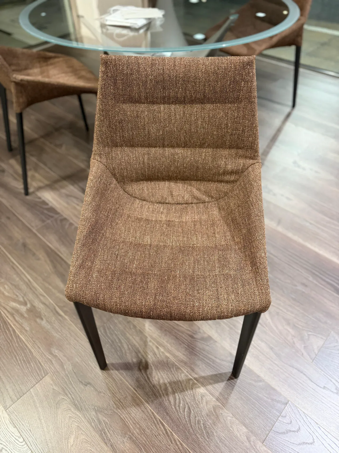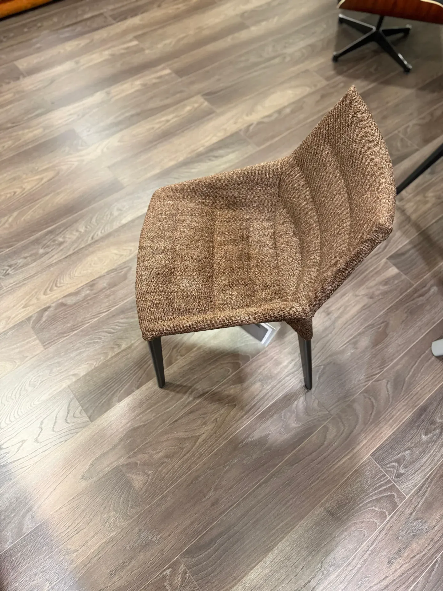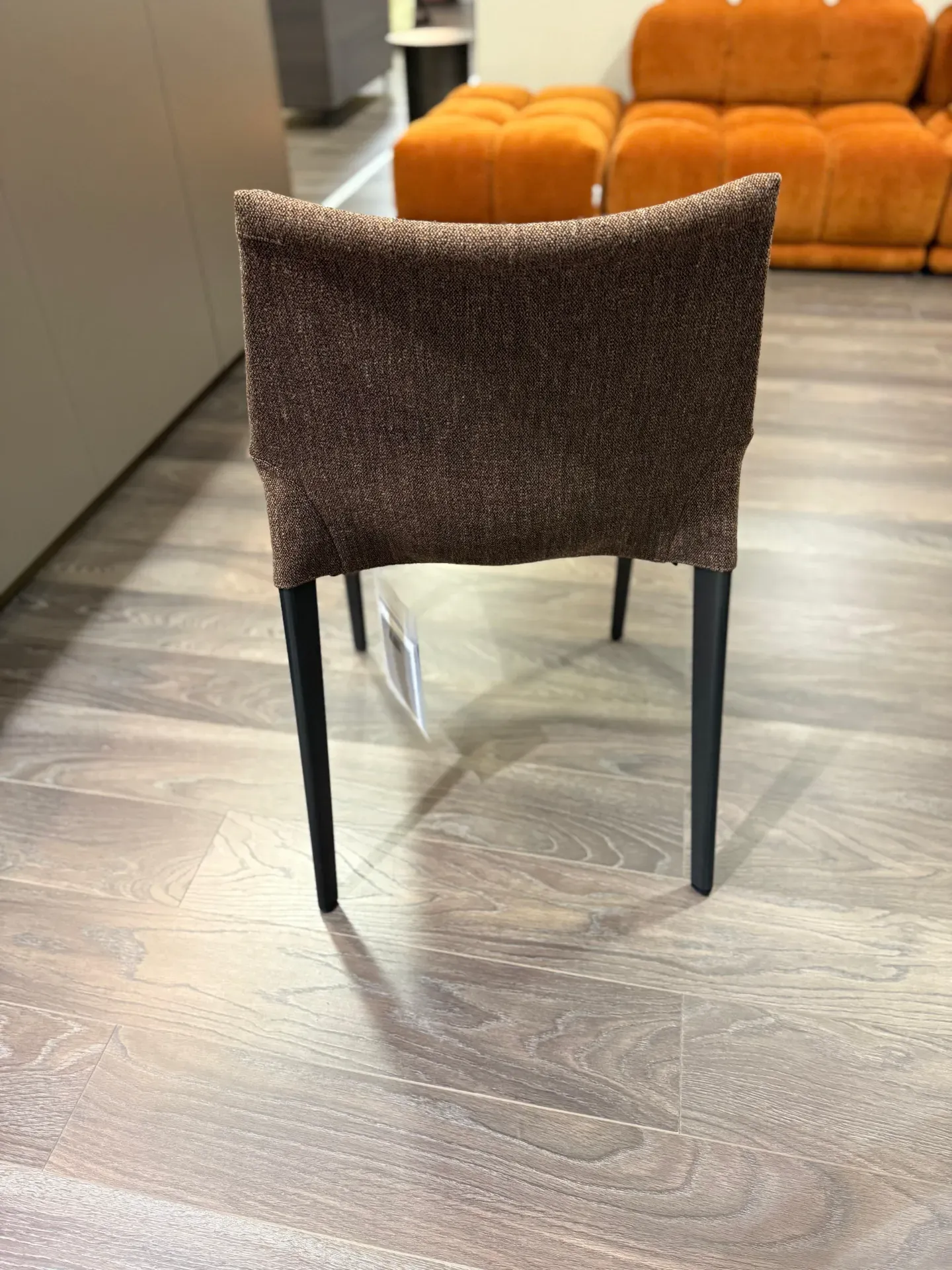 La sedia Outline di Molteni & C: struttura in vetroresina con gambe metalliche, rivestimenti tessuto sfoderabile, design firmato Arik Levy. In offerta outlet.