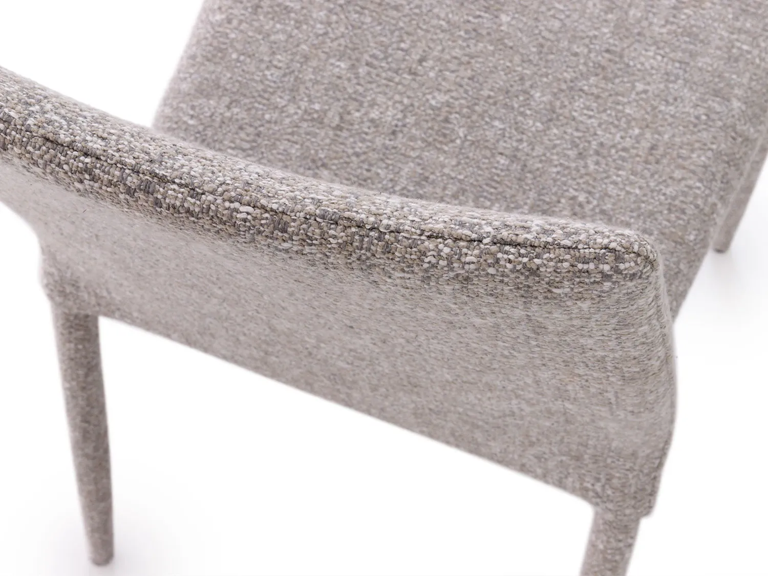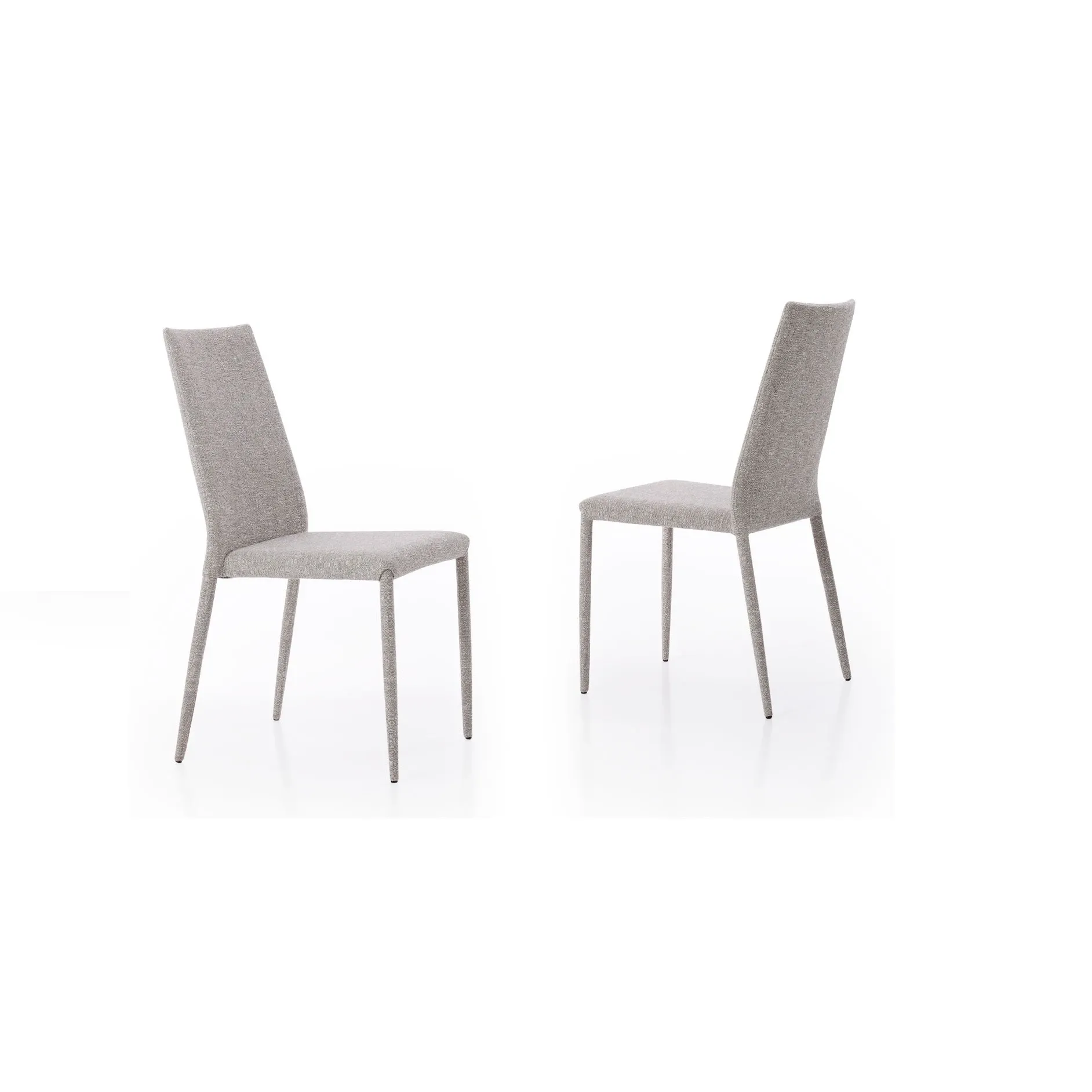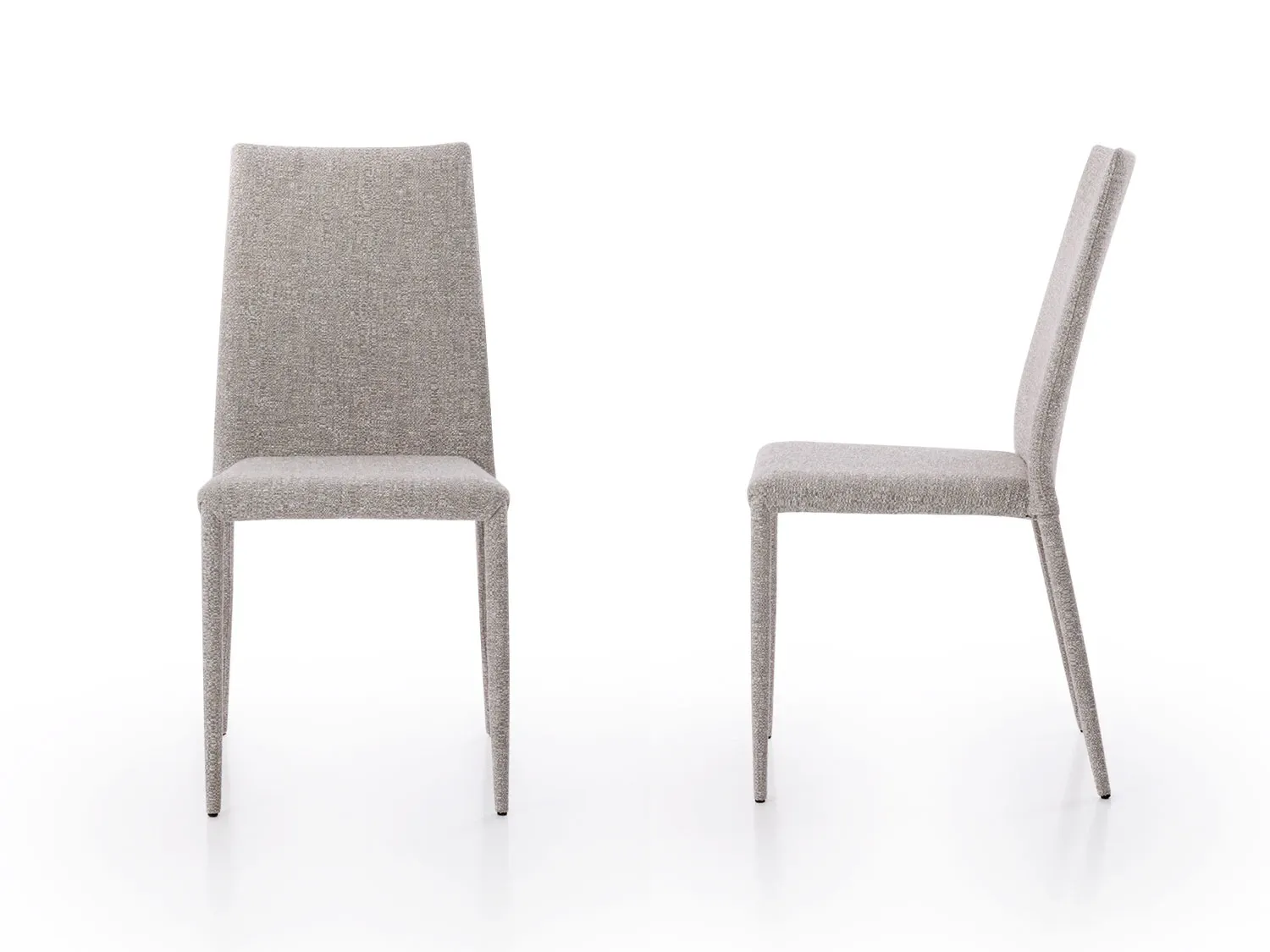 Akira outlet è un set composto da quattro sedie imbottite e rivestite, perfette per valorizzare tavoli importanti nella zona living o nella sala da pranzo. La loro grande versatilità d'inserimento è resa possibile da un design essenziale e lineare, impreziosito da un raffinato rivestimento in tessuto tramato melange con un delicato effetto bouclè.