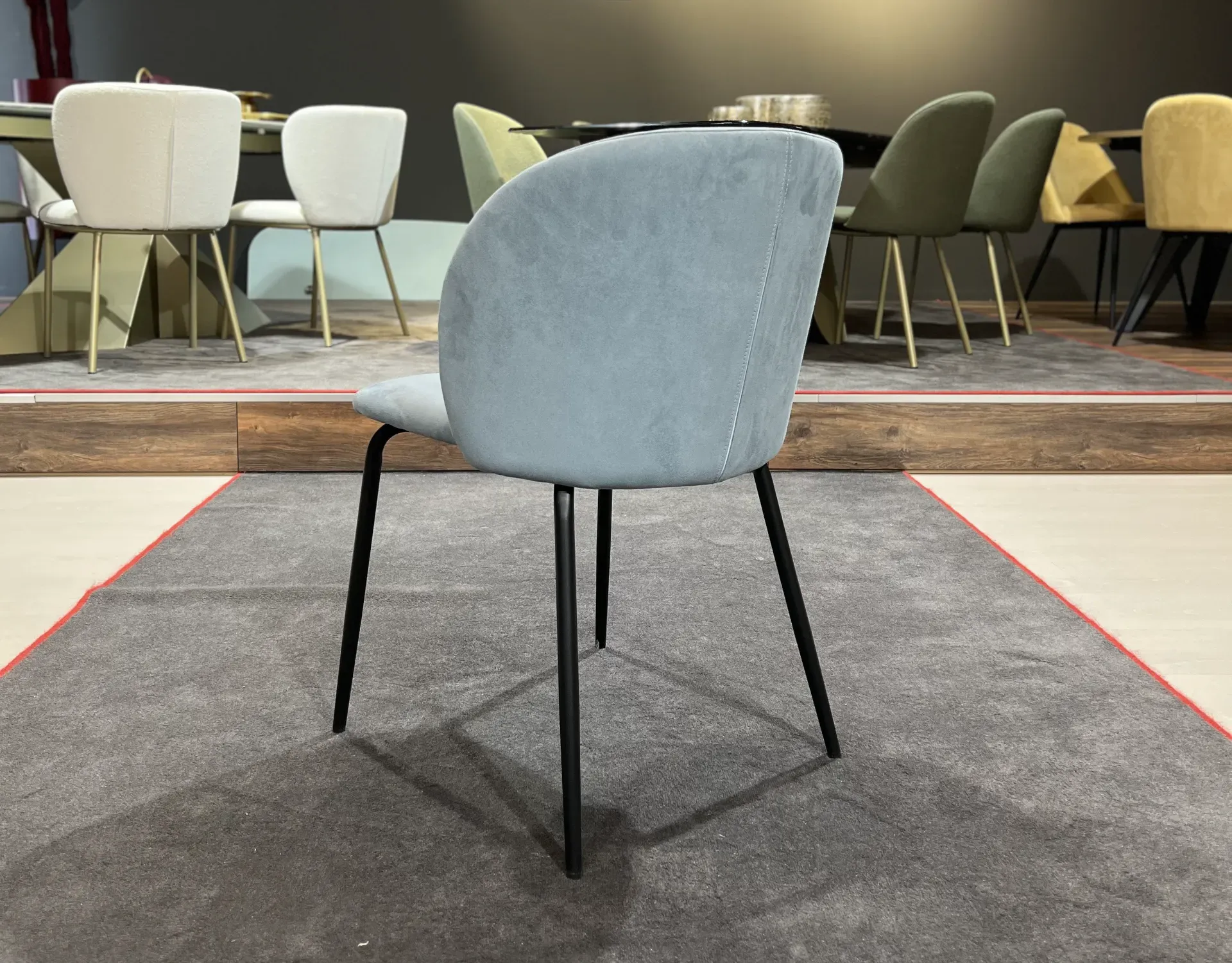 Set di 4 sedie Mood con struttura in metallo colore Nero, seduta e schienale in rivestimento tessuto similvelluto Econabuk Wave 707.