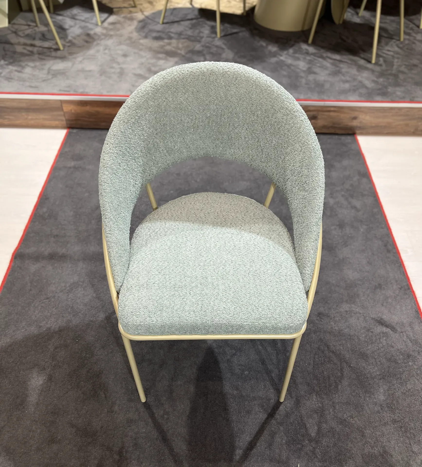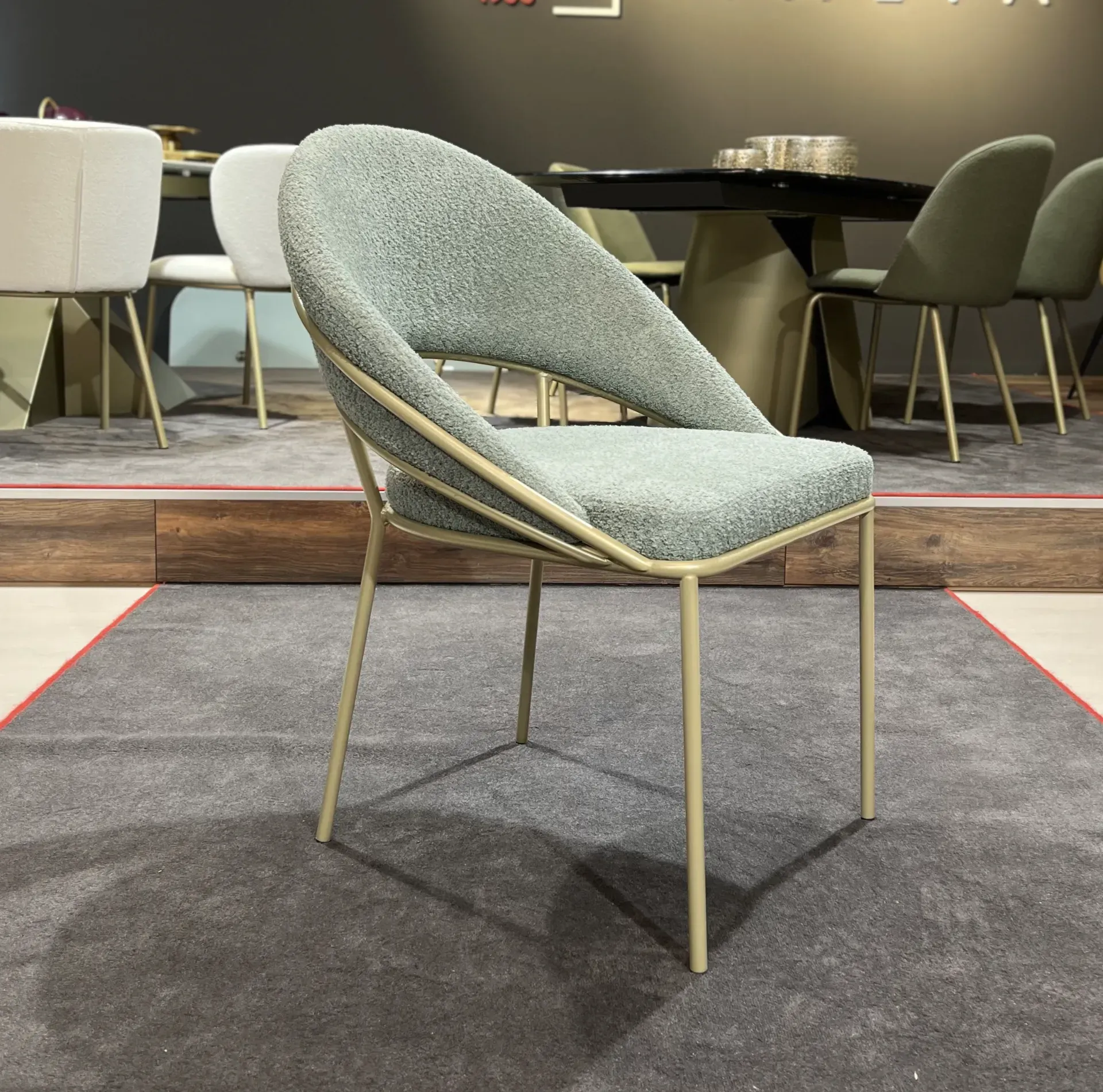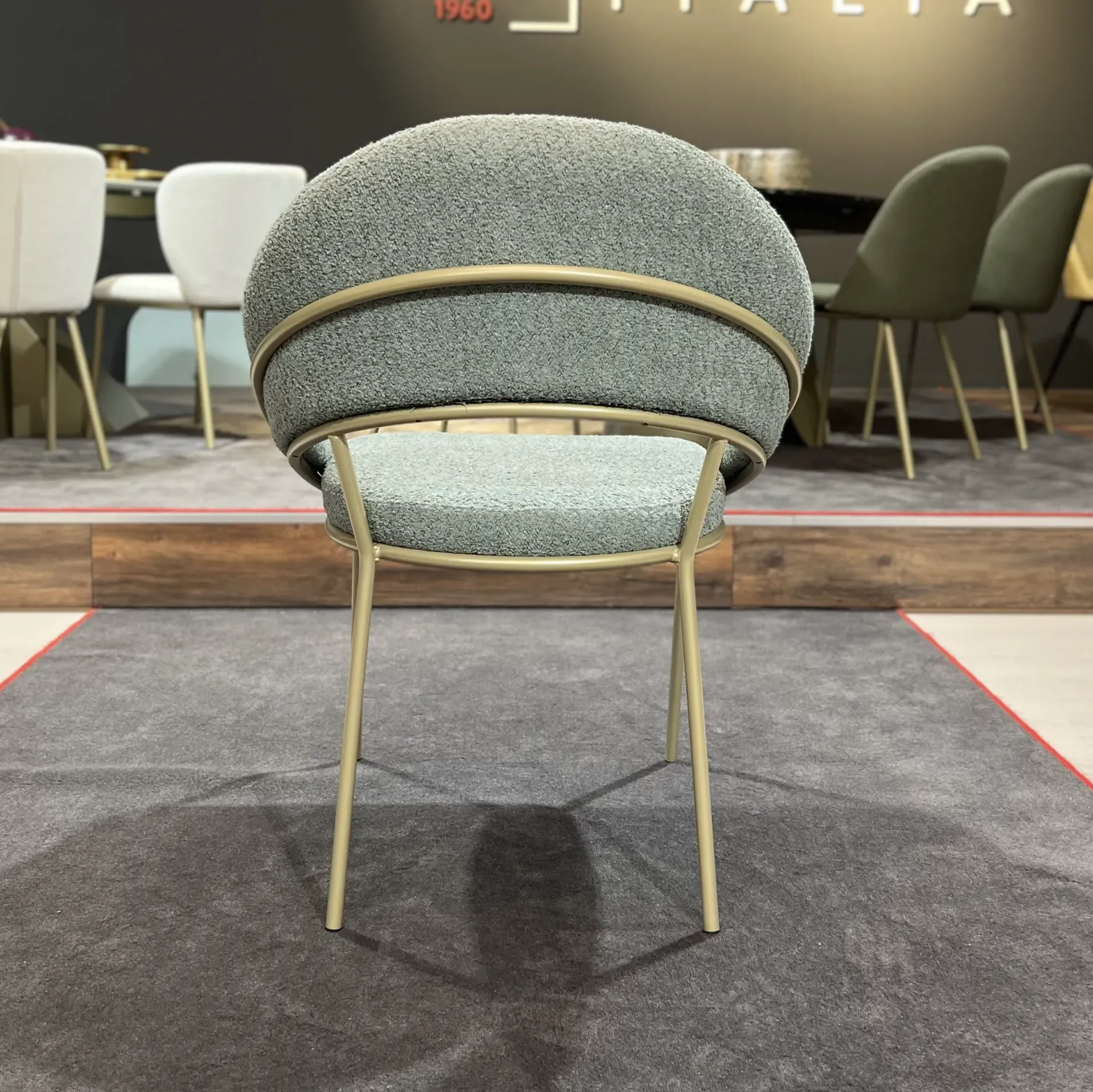 Set di 4 sedie Viola con struttura in metallo colore Champagne, seduta e schienale in rivestimento tessuto bouclé Sogno 803.