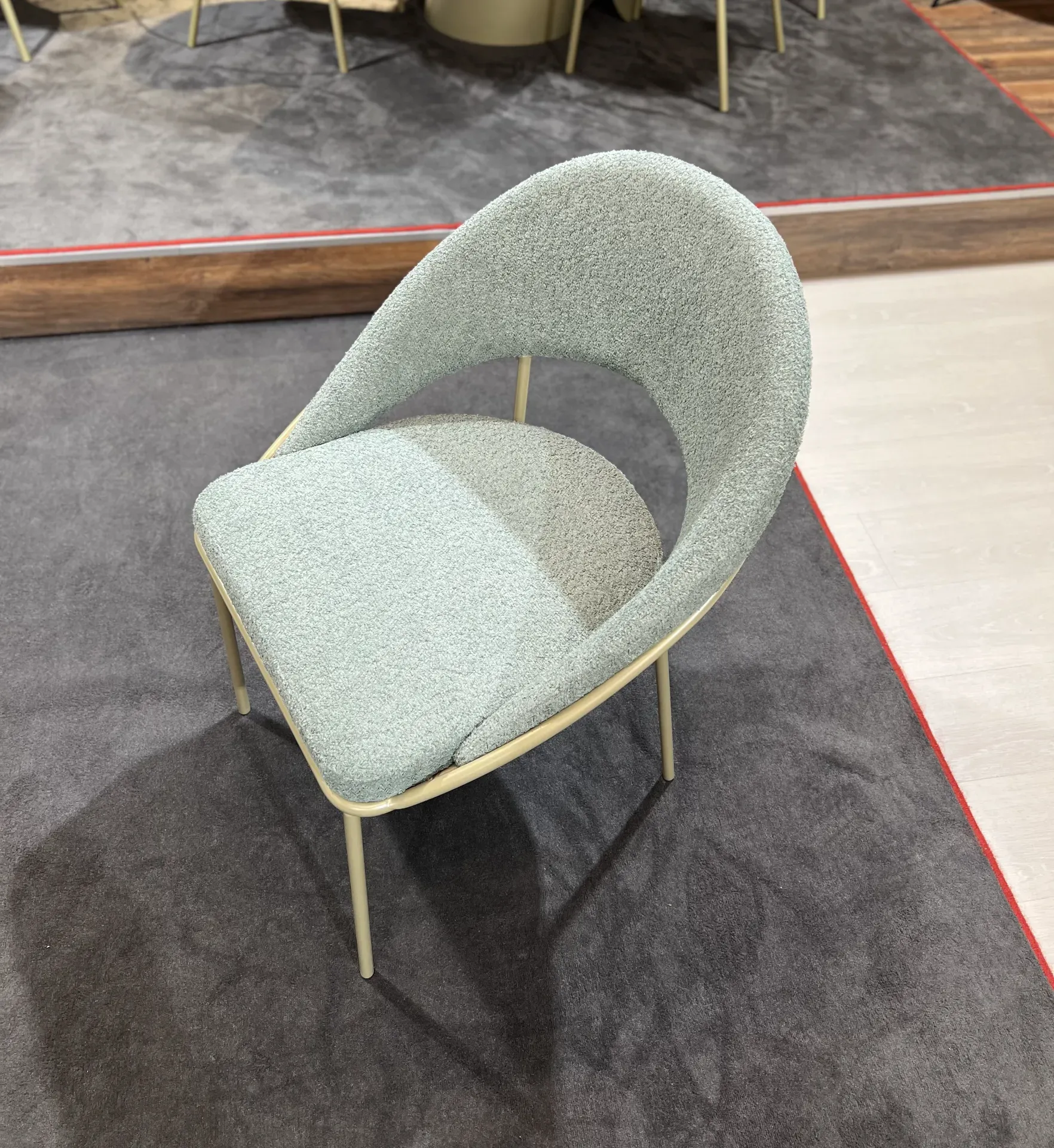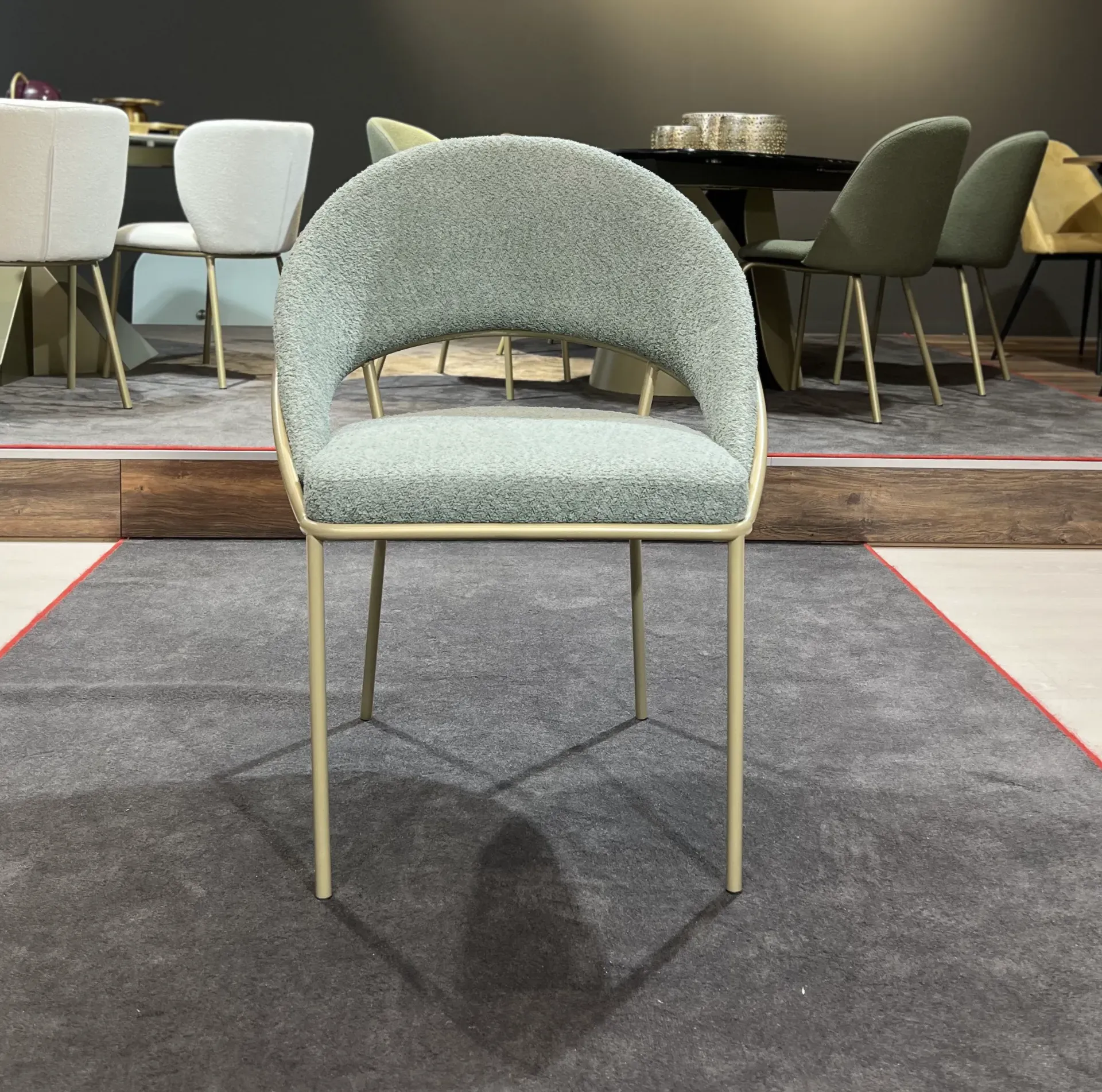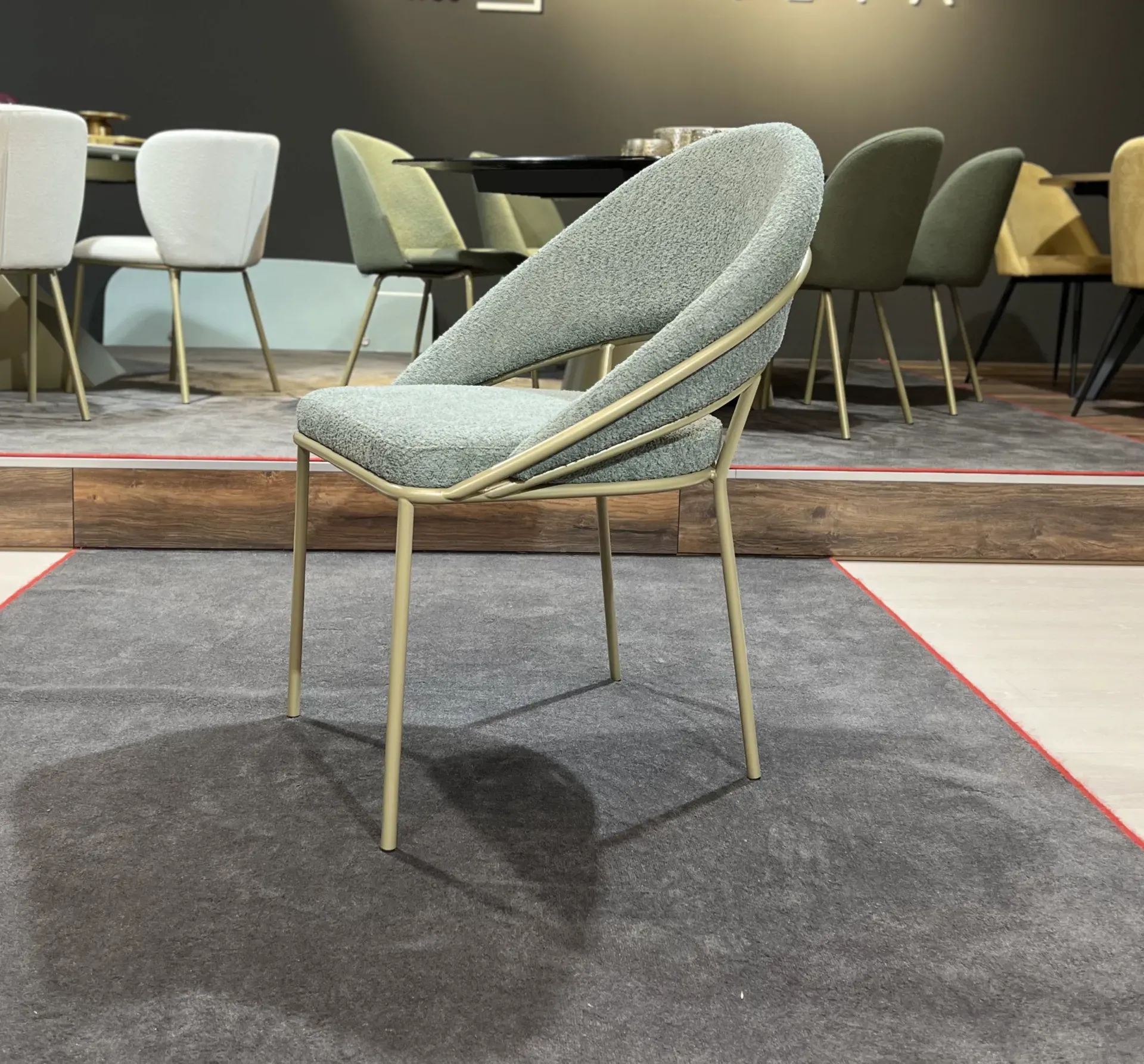 Set di 4 sedie Viola con struttura in metallo colore Champagne, seduta e schienale in rivestimento tessuto bouclé Sogno 803.