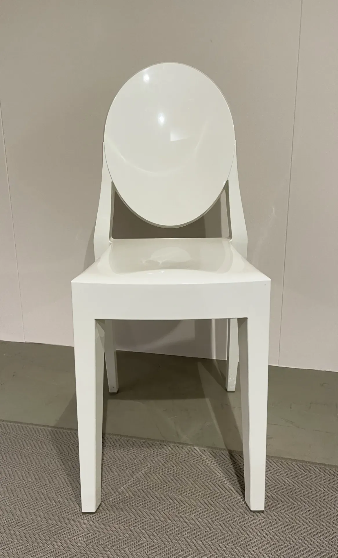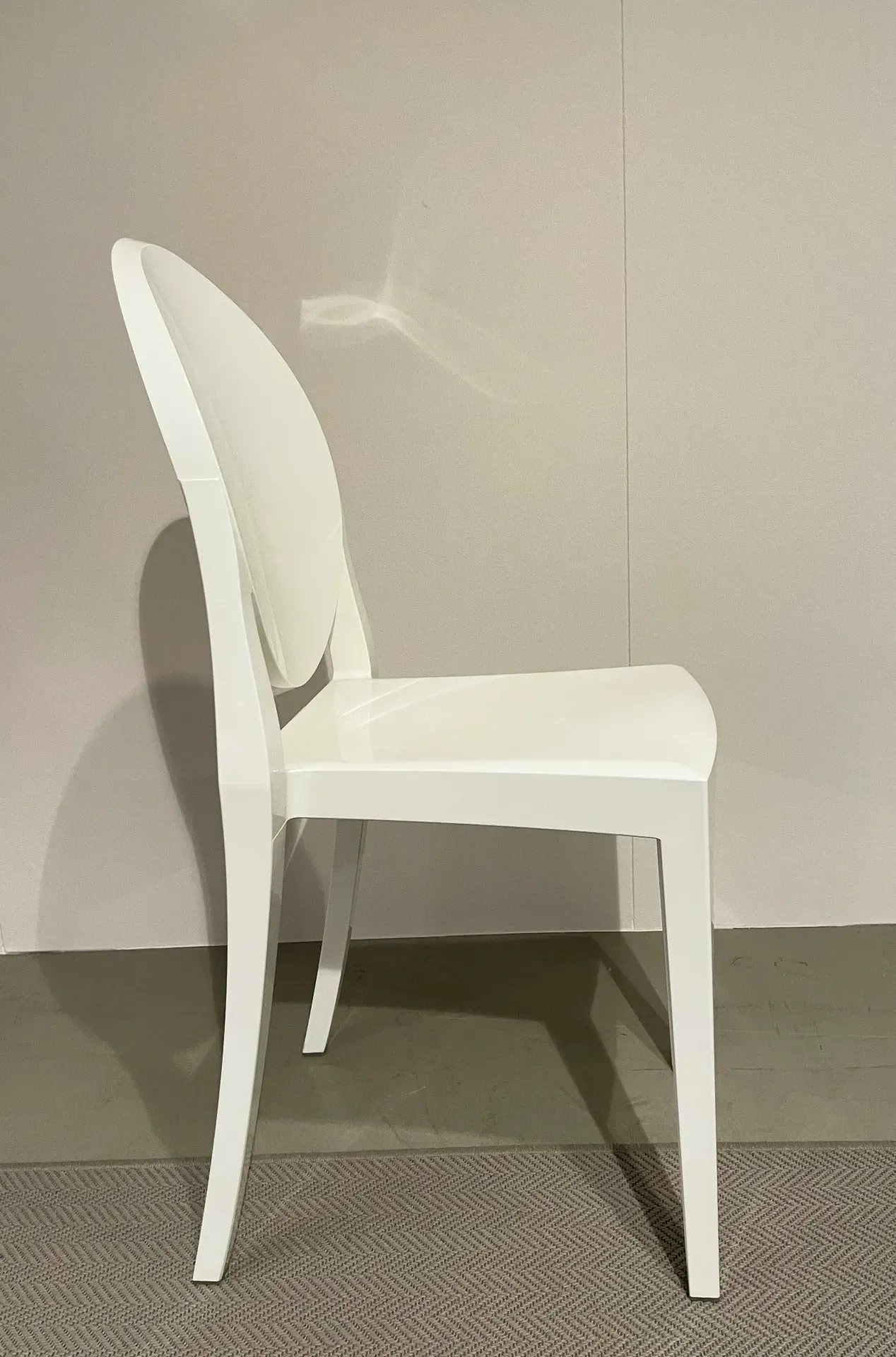 La finitura in bianco coprente aggiunge un ulteriore livello di raffinatezza, rendendola adatta a qualsiasi ambiente, sia interno che esterno. La sua capacità di resistere agli urti e agli agenti atmosferici la rende non solo esteticamente piacevole ma anche estremamente funzionale. La Victoria Ghost è una sedia senza braccioli che si distingue per il suo grande carisma e personalità, capace di inserirsi con versatilità in ogni contesto abitativo.