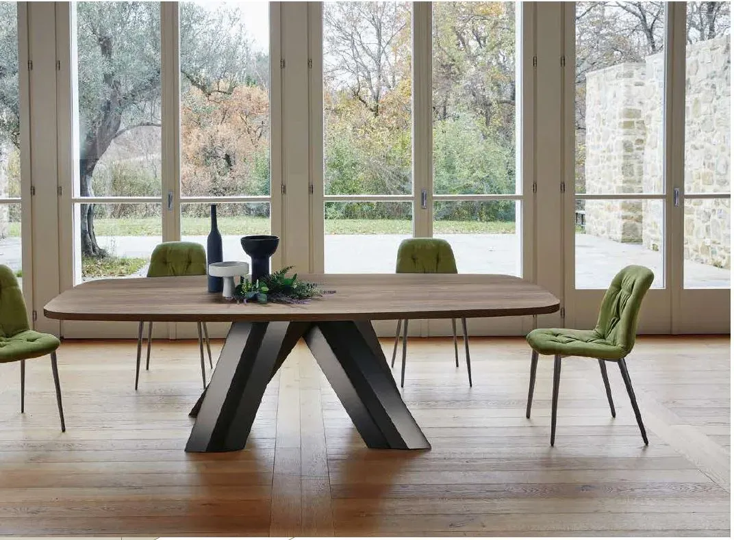 Una sedia che si personalizza fino in fondo e si abbina senza fatica a qualsiasi tavolo del catalogo o a qualsiasi altra scelta d'arredo.
