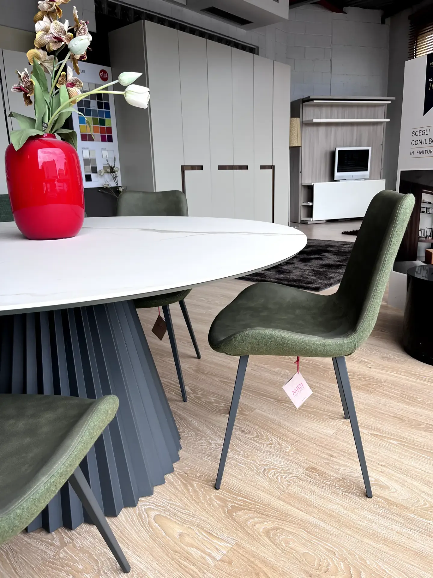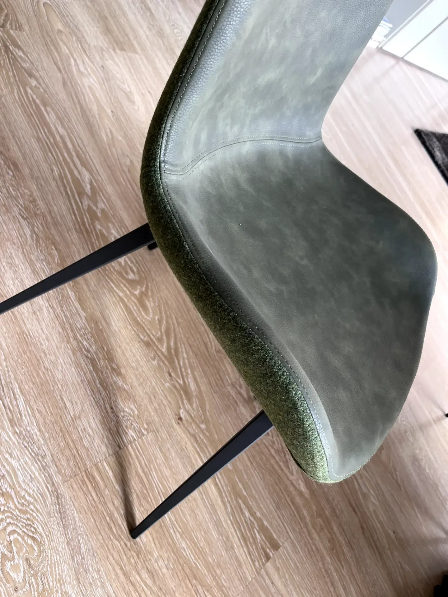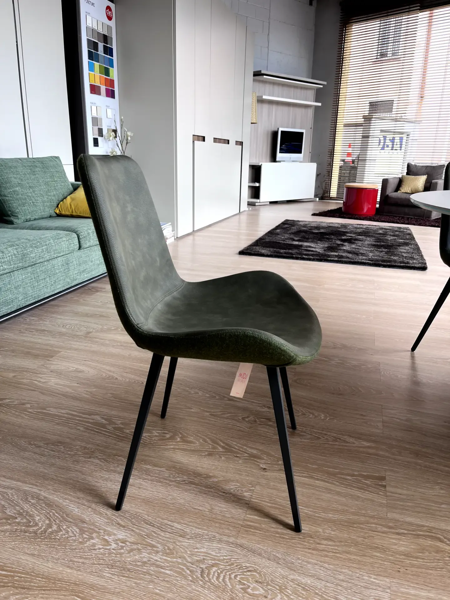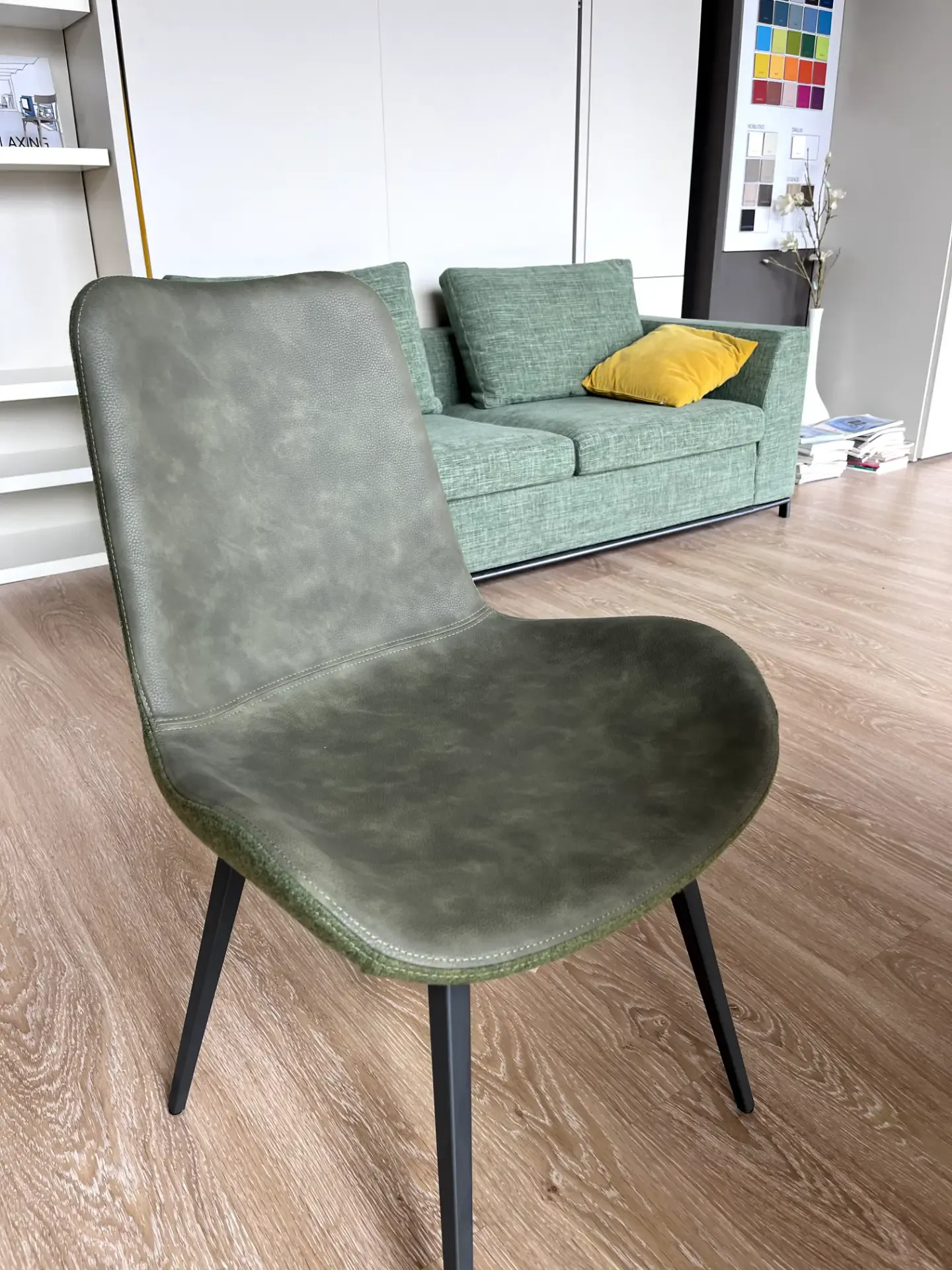 Sedia Dalia S M M TS, è una sedia perfetta per ogni ambiente interno. La sedia presenta una base in acciaio cromato o verniciato e una scocca rivestita: interno similpelle vintage verde e cuciture in tinta, esterno tessuto fenix wool verde oliva. Dalia S M si adatta a ogni necessità o preferenza.