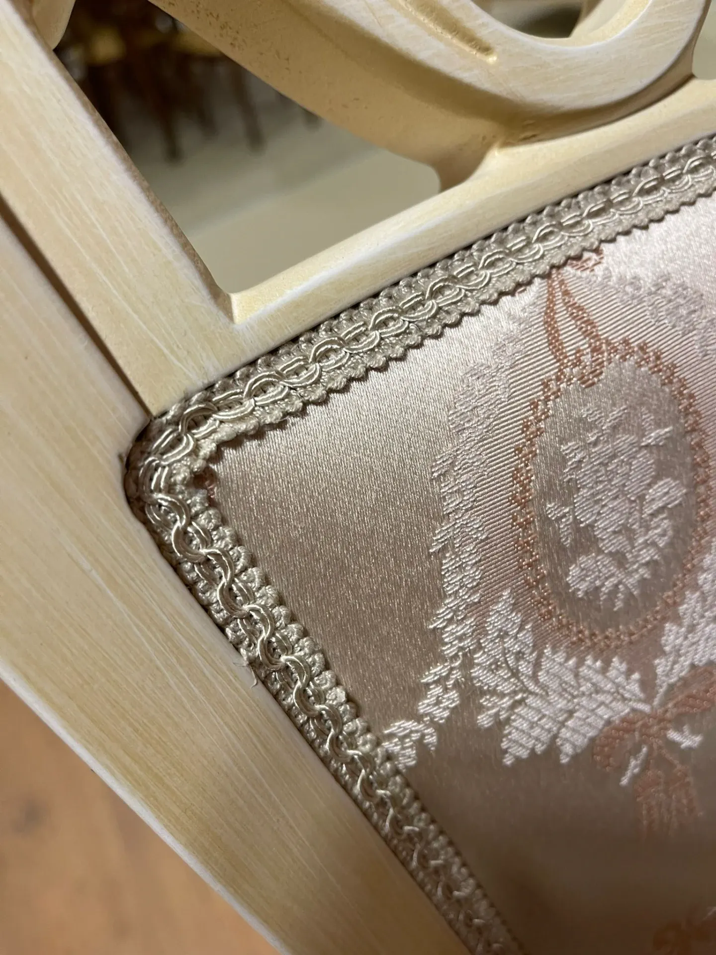 SED REGINA PAT_SEDIA MOD.REGINA PATINATA L.56 P.47 H.104 FINITURA CON DECORO ORO STANDARD CON TESSUTO DI SERIE BREVENT ROSA