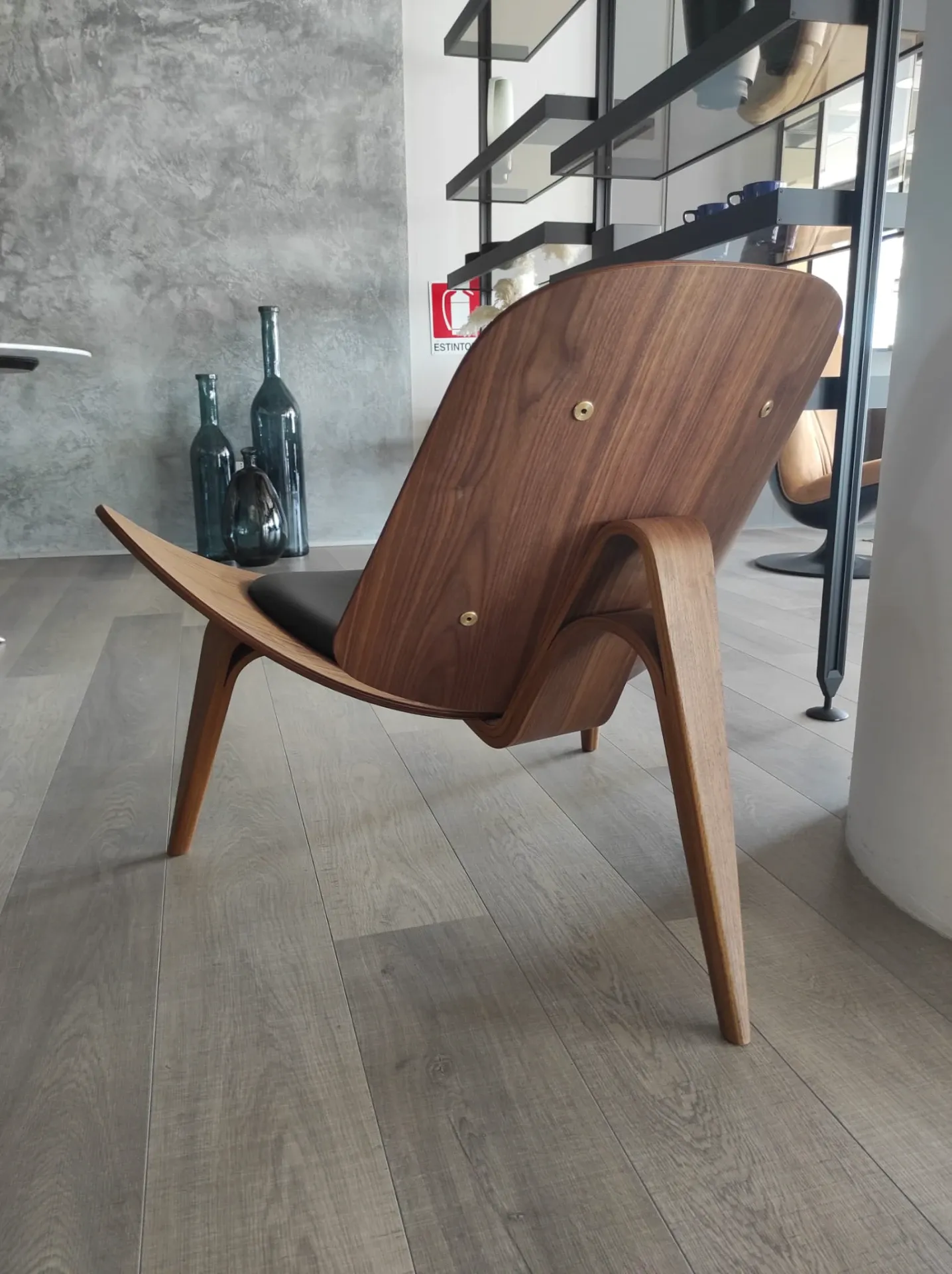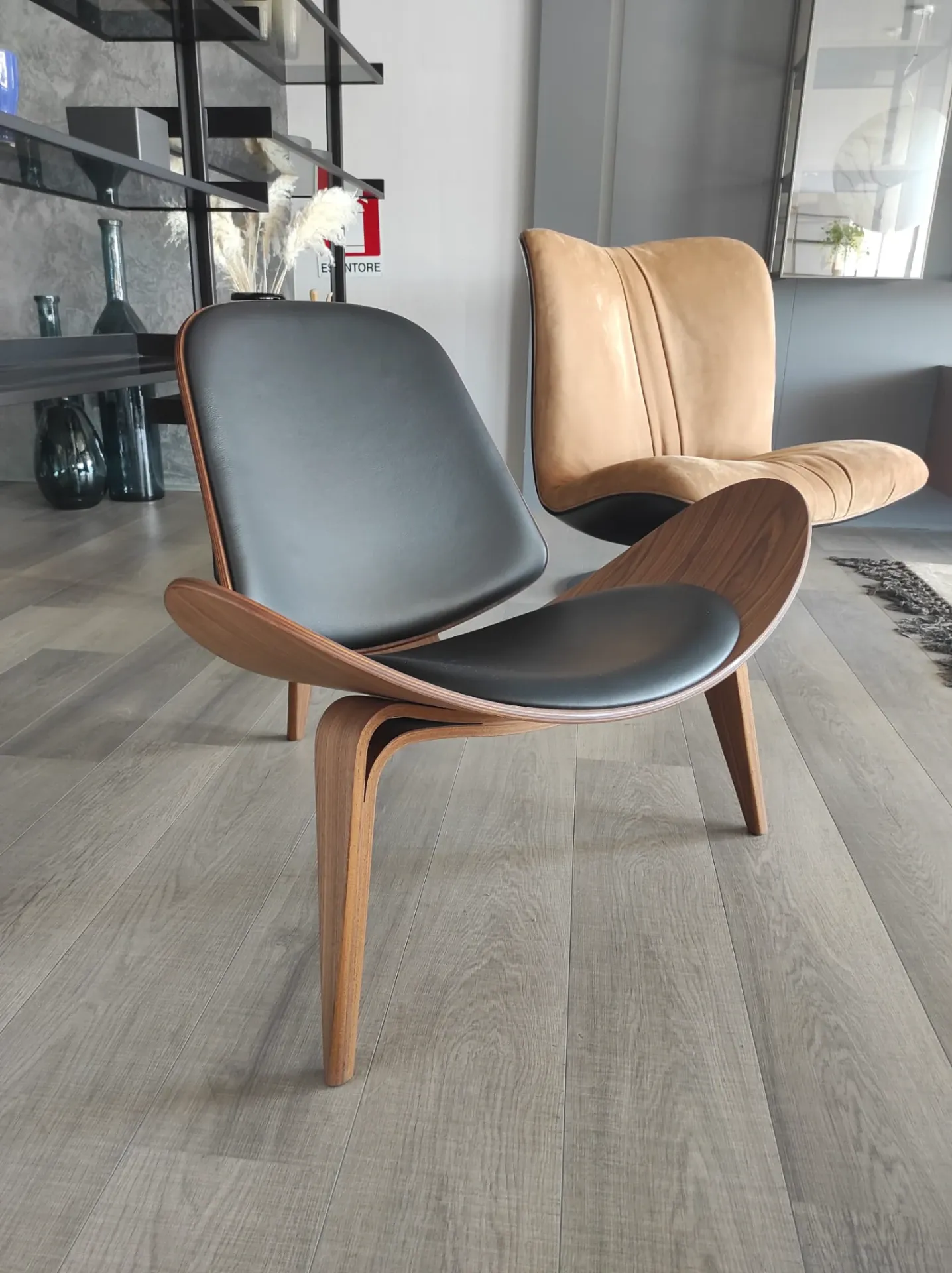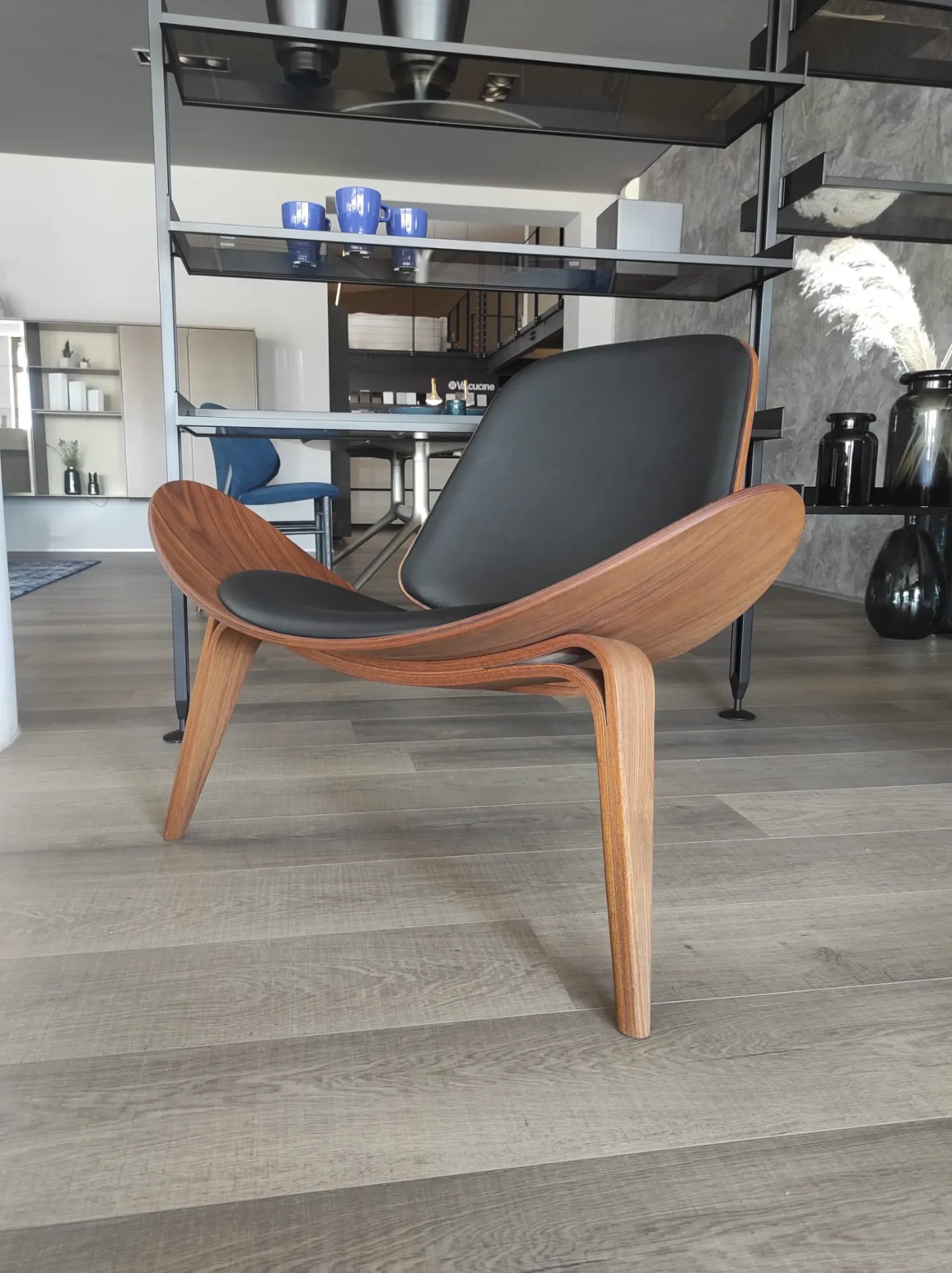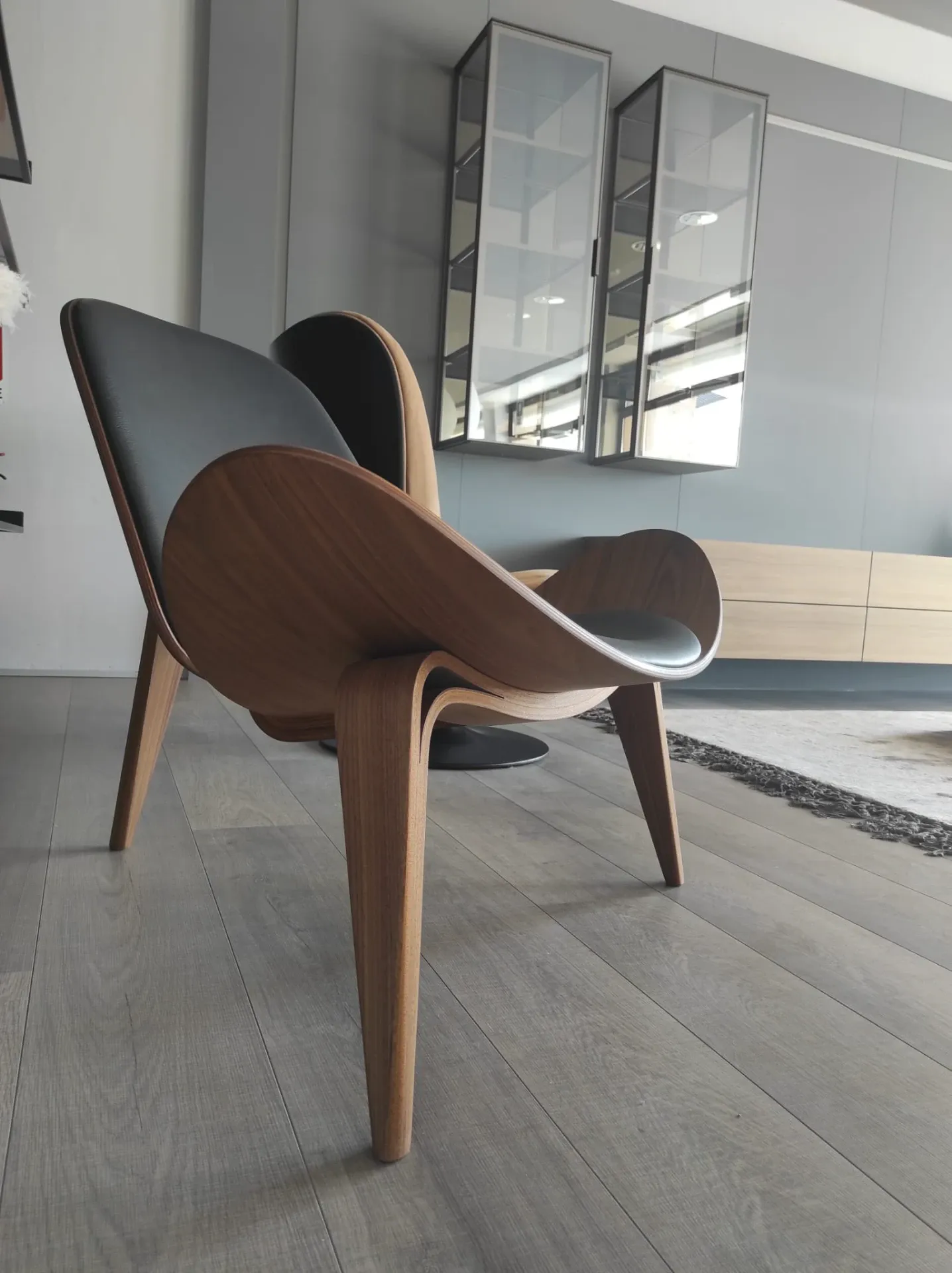 Poltrona mod.CH07 Shell noce ad olio e pelle nera Thor 301