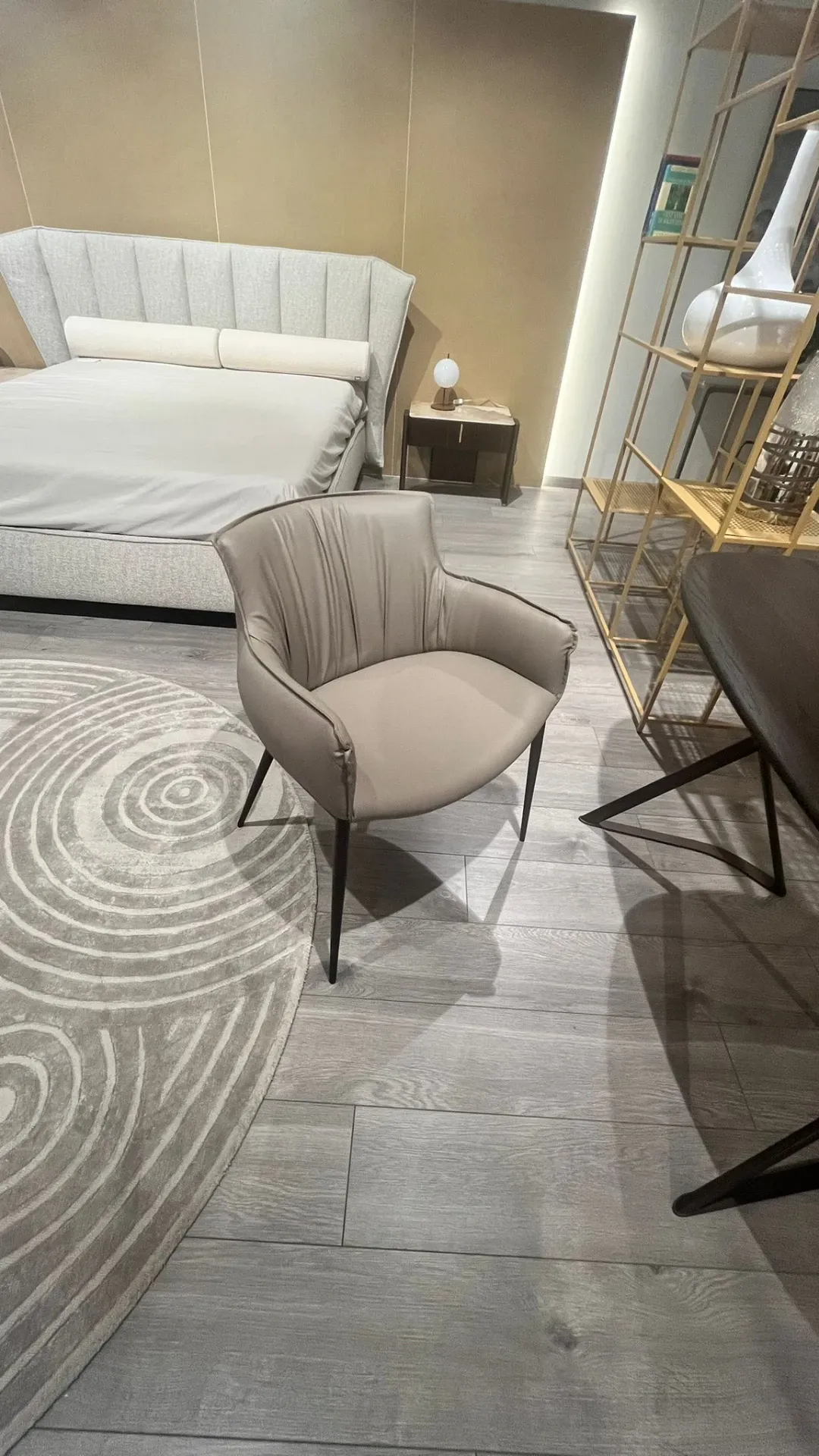 SEDIA CATTELAN MODELLO RHONDA CON BASE IN METALLO FINITURA BRONZO E SEDUTA IN ECOPELLE.