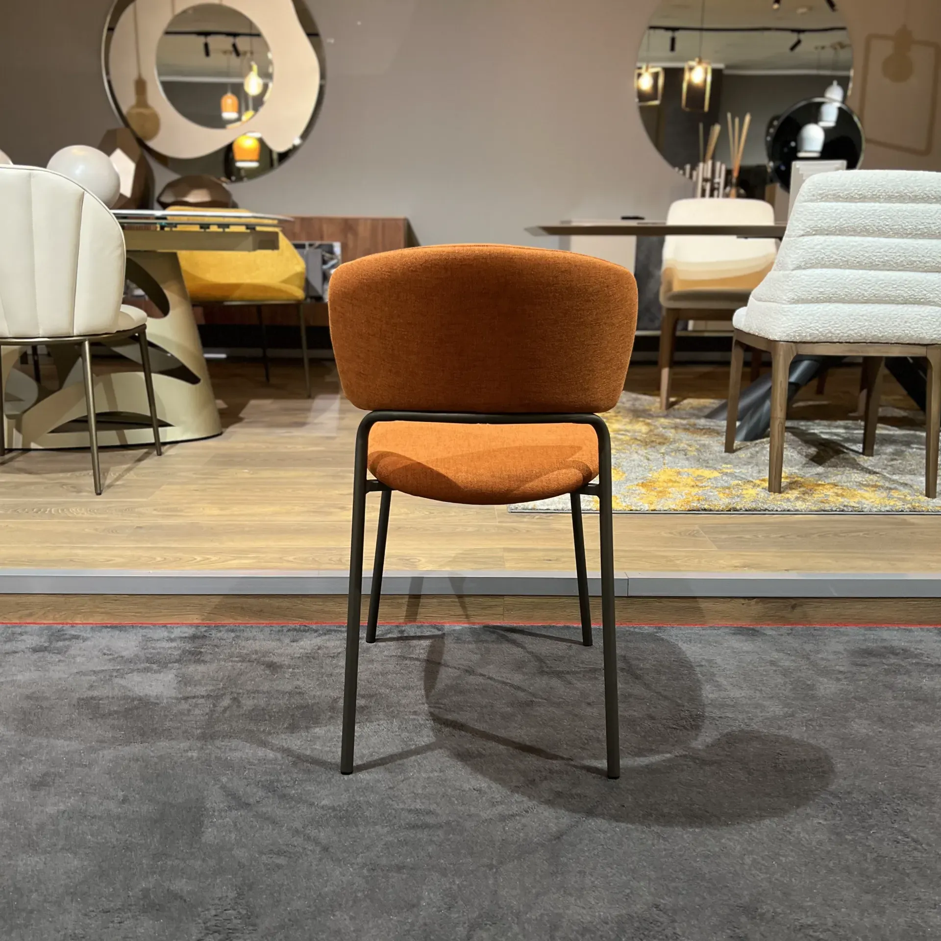 Set di 6 sedie Sunrise con struttura in metallo colore Bronzo, seduta e schienale in rivestimento tessuto Joint 307.