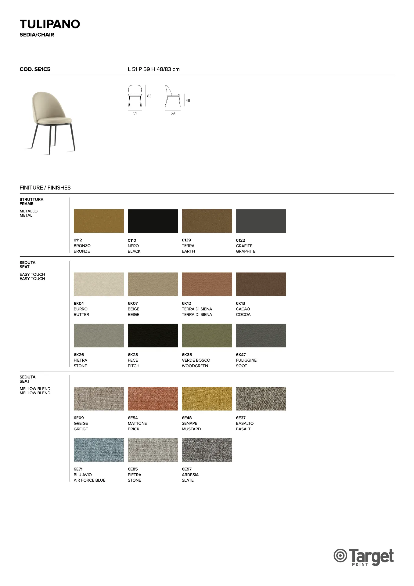 Praticità e design sono accostati alla perfezione nella sedia Senza braccioli Target point a cui questa Offerta Outlet è dedicata, poiché costruita in tessuto: il materiale in questione si caratterizza grazie alla sua estetica, capace di arricchire alla perfezione ogni locale pur resistendo nel tempo ad un uso prolungato.