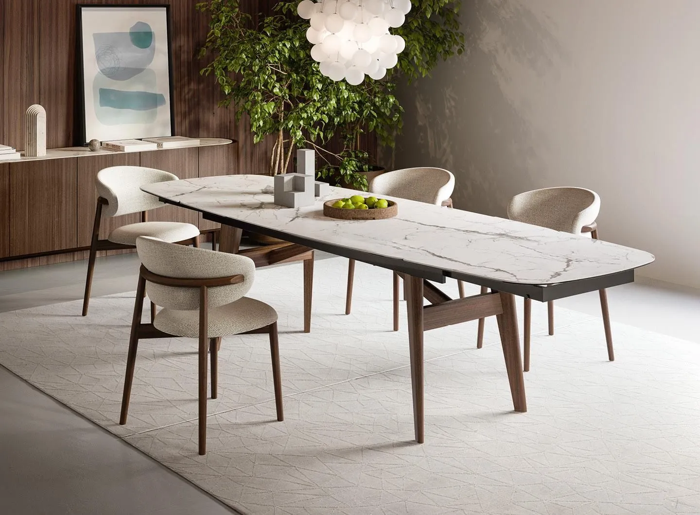 OLEANDRO è una sedia imbottita con base in metallo. Seduta focalizzata sul comfort: sedili e schienali si caratterizzano per una generosa e morbida imbottitura disponibile con diverse tipologie di rivestimento.