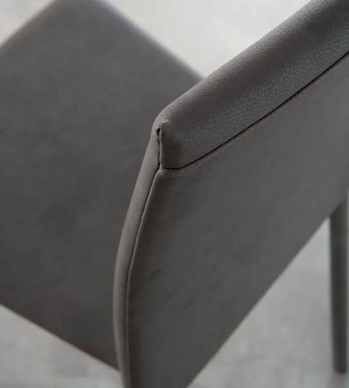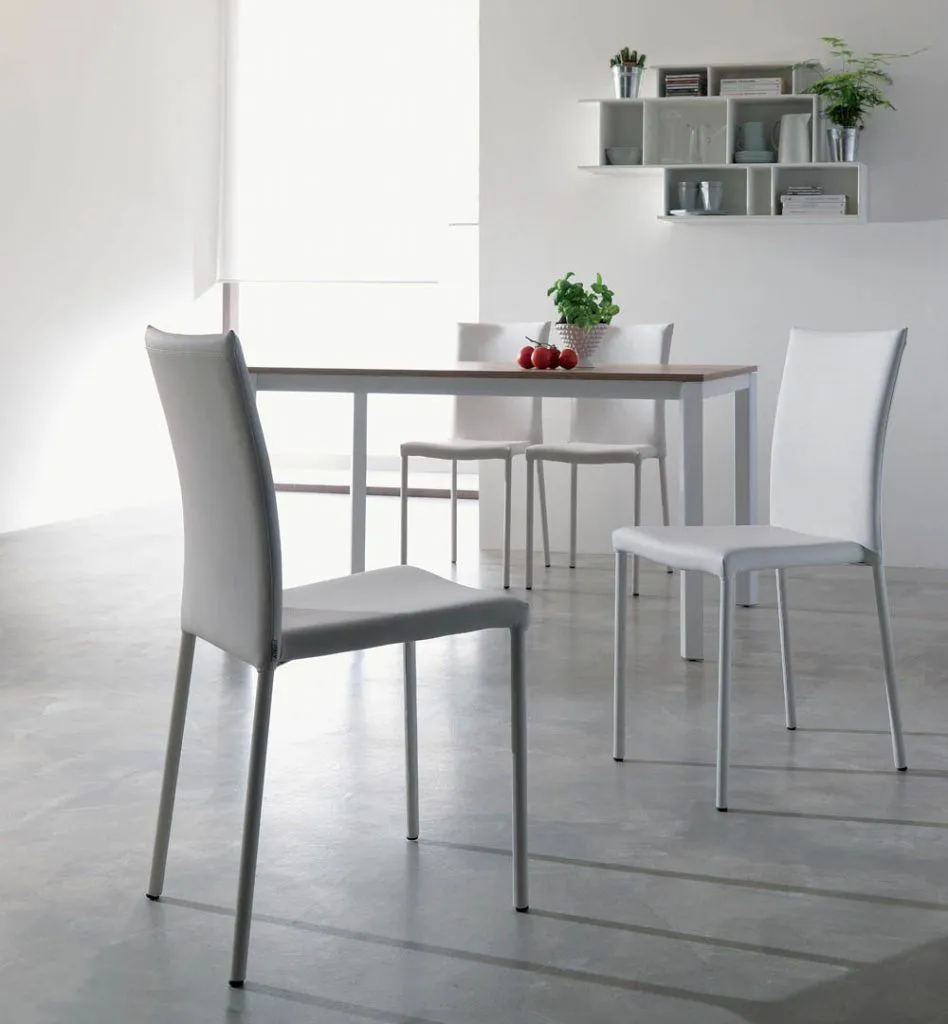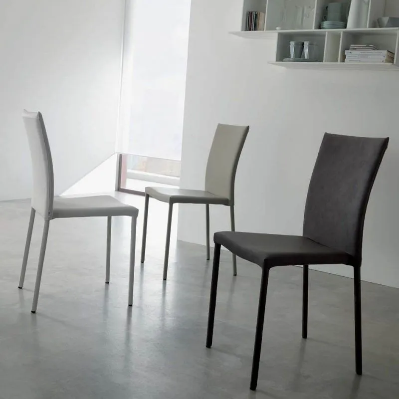 Sedia Ozzio con struttura in metallo completamente rivestita in eco pelle, disponibile in vari colori di pelle. Grazie al suo design caratterizzato da linee eleganti e sinuose, risulta versatile e si adatta facilmente a diversi contesti, diventando l’ideale per zone come la cucina, la sala da pranzo o il soggiorno.