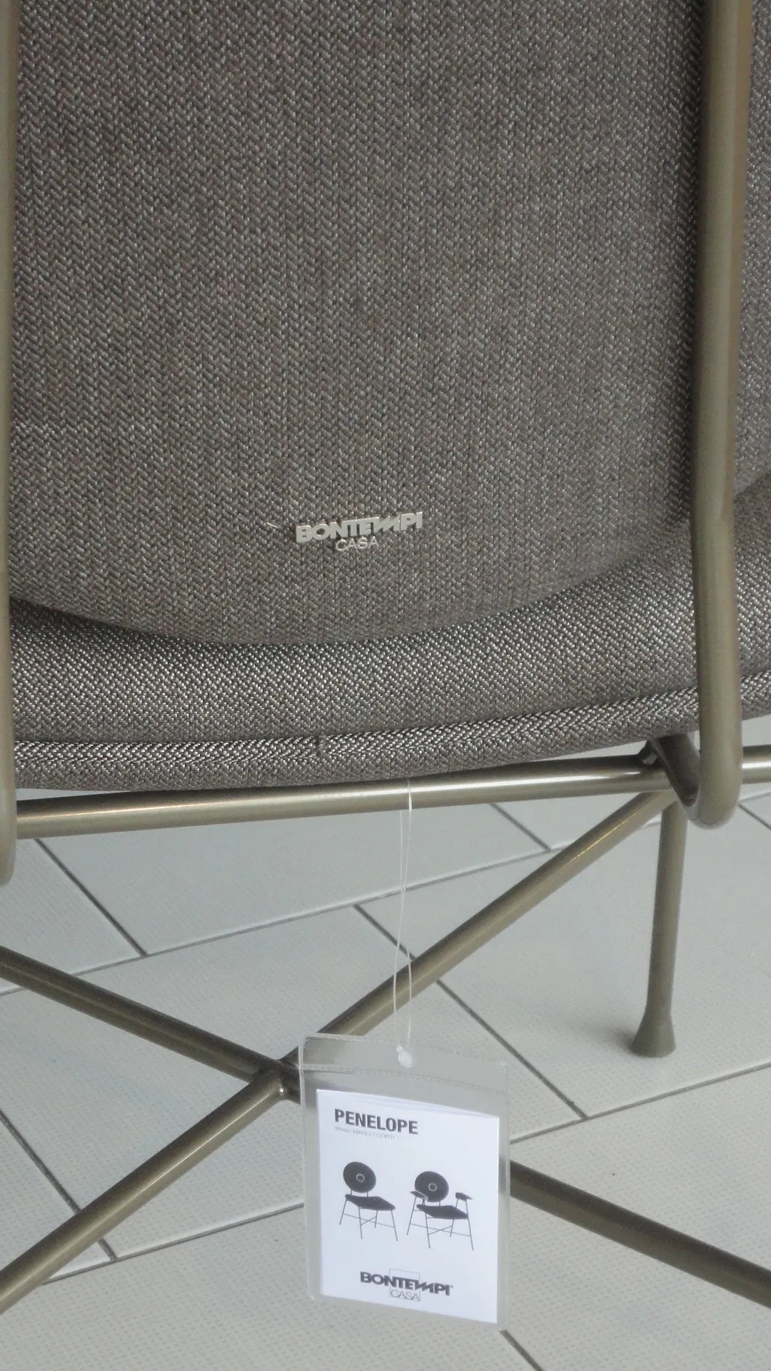 Sedia modello Penelope della ditta produttrice Bontempi Casa con struttura in ottone anticato laccato dalle dimensioni cm 46 di larghezza, cm 60 di profondità e cm 47 / 86 di altezza . Il rivestimento è in tessuto testa di moro ed il bottone in velluto tortora . Pezzi disponibili a magazzino : 4 Iva inclusa nel prezzo Trasporto e montaggio esclusi - da considerare a parte