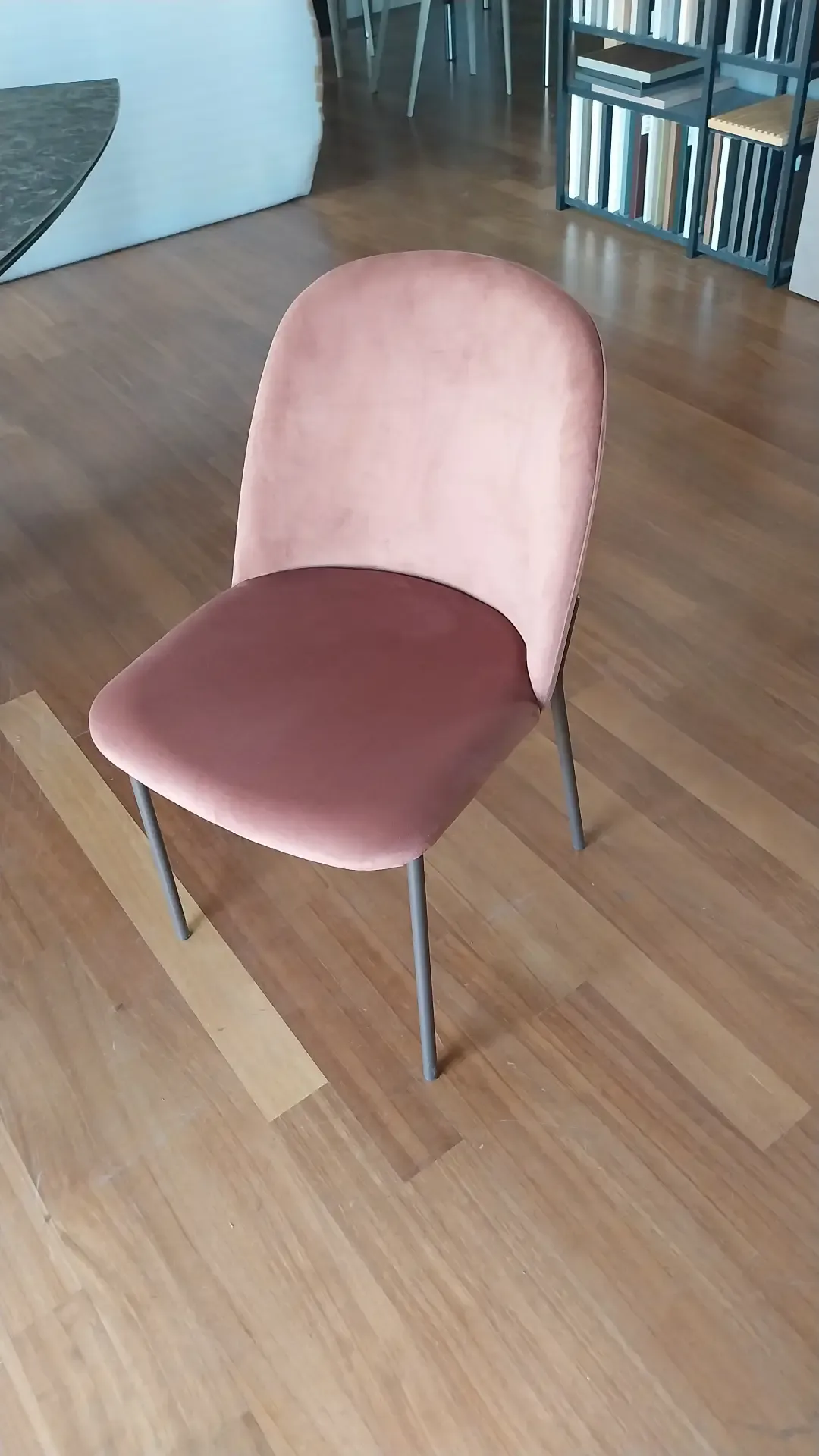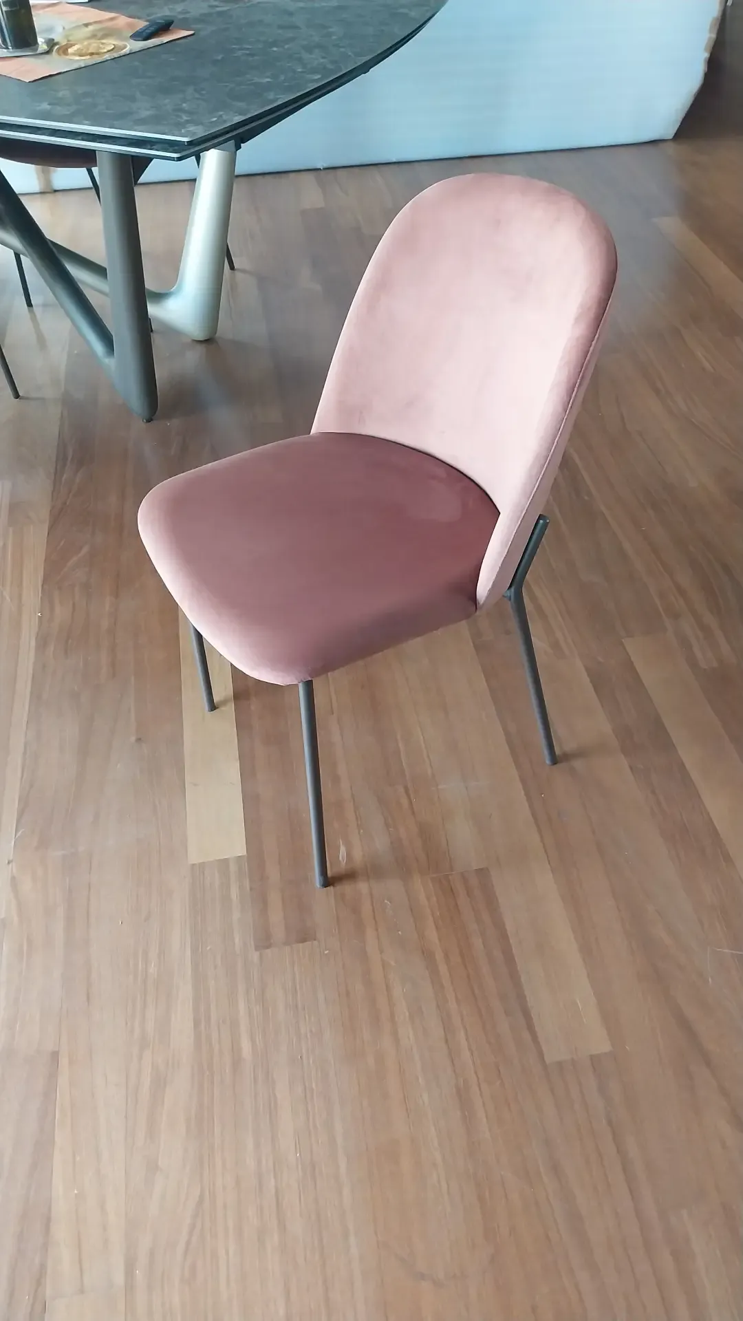 Set composto da 04 sedie modello Chloe di Compar struttura in metallo verniciato Bronzo goffrato rivestite in velluto idrorepellete colore Aragosta