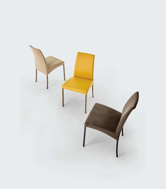 Il Tessuto Penny è il rivestimento che meglio racconta il carattere di questa sedia: una texture a grana fine, leggermente strutturata, che porta calore visivo e tattile senza appesantire. Regge bene l'uso quotidiano, mantiene la forma nel tempo ed è disponibile in una palette di colori sofisticati che si prestano sia agli abbinamenti coordinati che ai contrasti ricercati con la struttura. Per chi preferisce una superficie più liscia e contemporanea, l'EcoNabuk porta la morbidezza vellutata della scamosciata con la praticità di un materiale sintetico resistente.