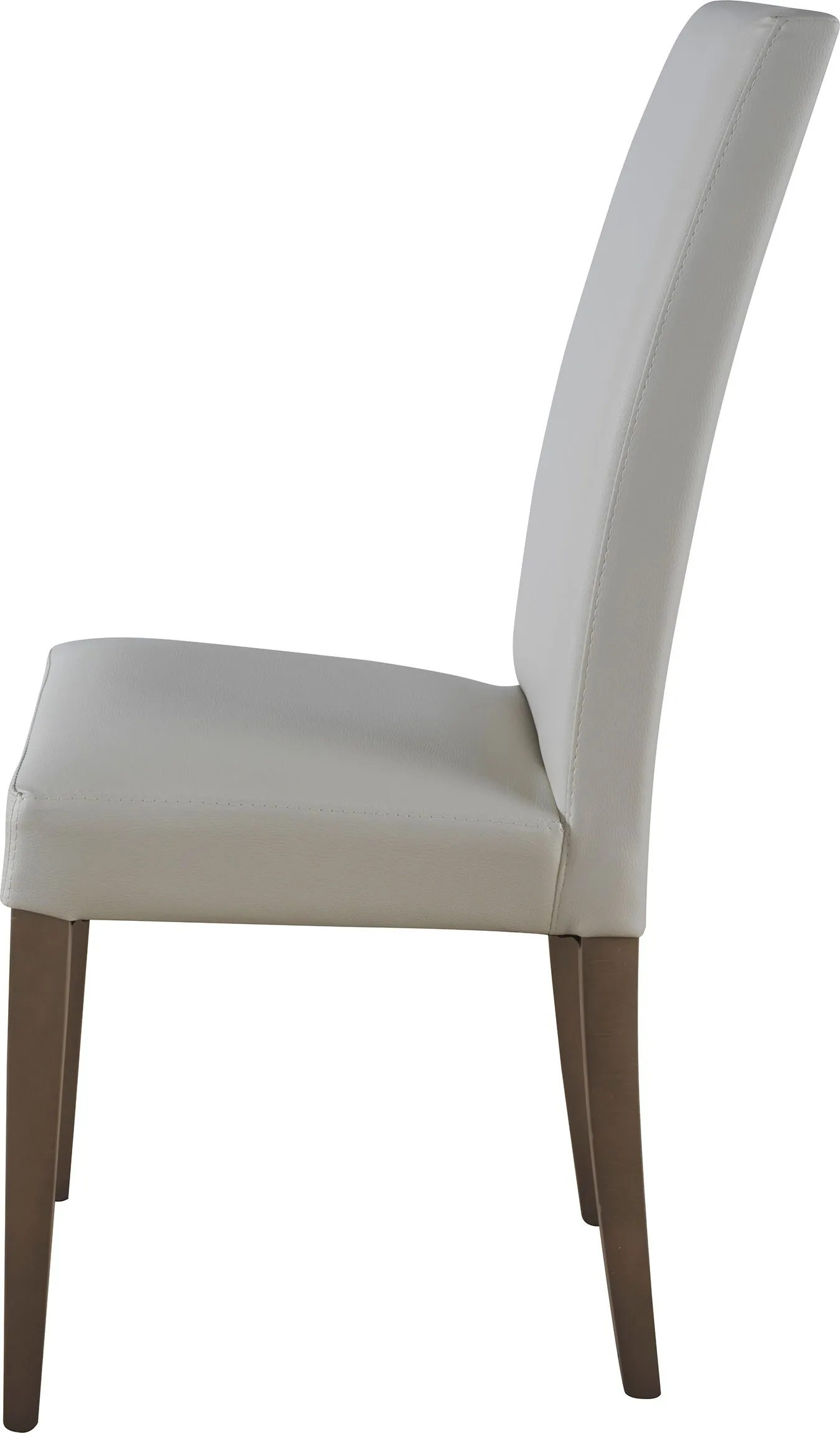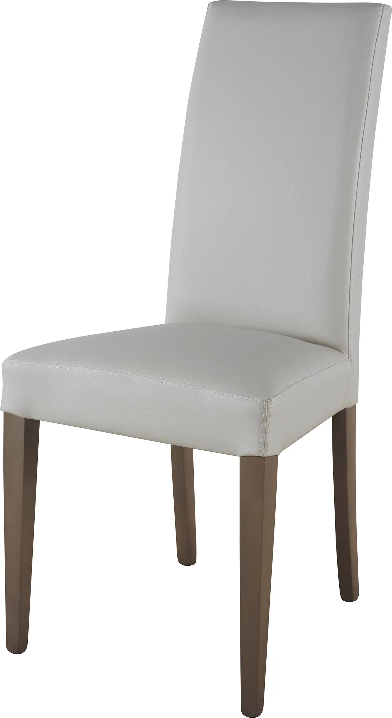 Sedia MobiLike dal design moderno e elegante, adatta per arredare zona living e cucina. Di colore beige, il rivestimento della seduta e dello schienale in ecopelle ne garantisce massimo comfort mentre la struttura cromata delle gambe assicura grande stabilità. Le gambe sono in legno massello. Pratica e impilabile, la sedia è disponibile nella variante di colore BIANCO.