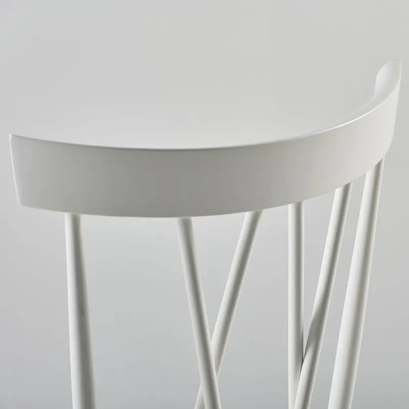 Sedia realizzata in legno massello laccato color bianco. Dimensioni: 88 x 48 x 47 cm