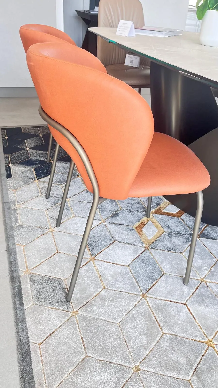SEDIA BABYLON DI ZAMAGNA. SCHIENALE E SEDUTA IN TESSUTO ANTIMACCHIA IDROREPELLETE IN SIMILPELLE. STRUTTURA IN METALLO BRONZO. L53 X P.58X H.48-81