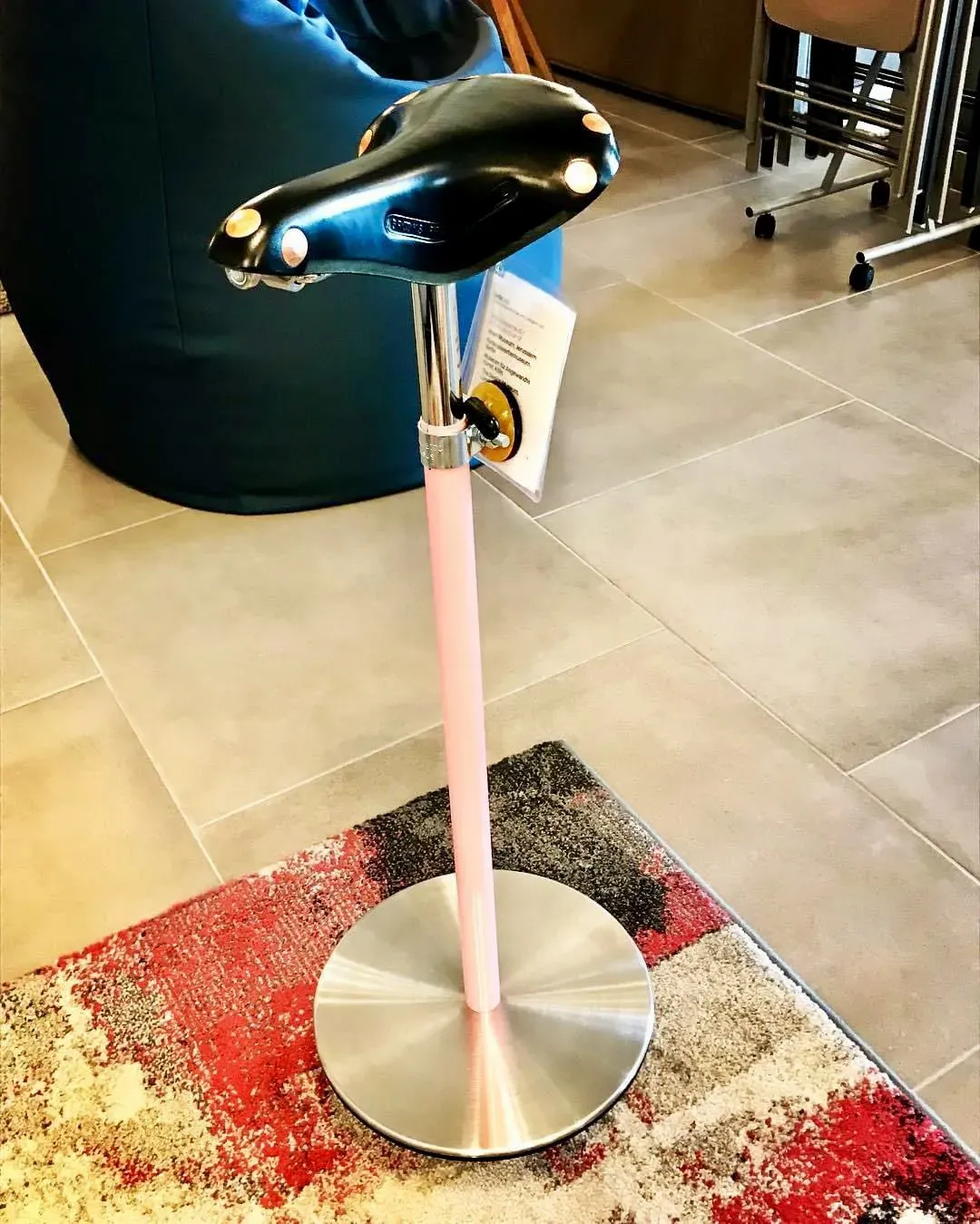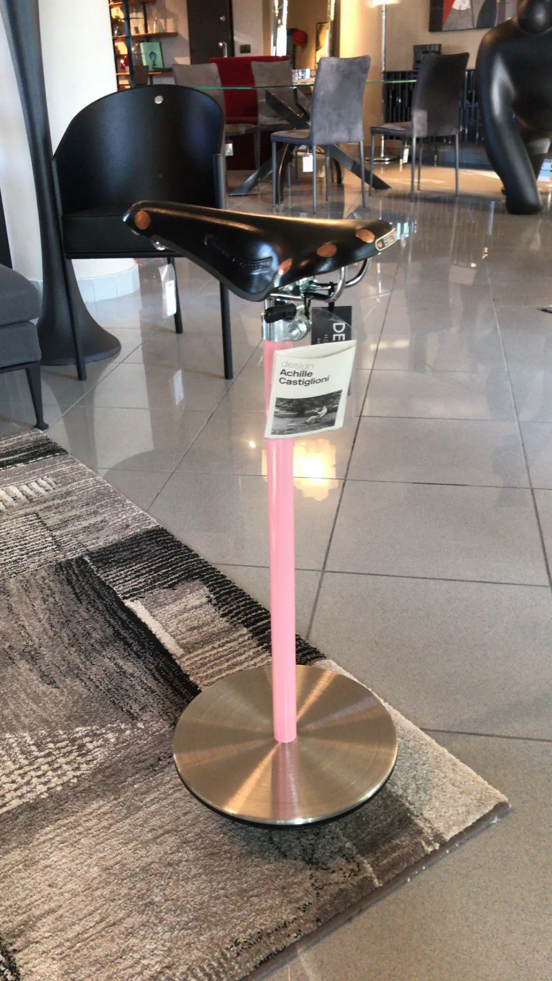 Un oggetto di design originale: lo sgabello Sella e' una vera e propria seduta per bicicletta da corsa. Disegnato nel 1957 dai fratelli architetti Achille e Pier Giacomo Castiglioni per una mostra artistica presso la prestigiosa Villa Olmo a Como, lo sgabello Sella e' una vera seduta da ciclista, pensata pero' per le postazioni telefoniche del tempo, quando gli apparecchi erano applicati verticalmente al muro. Zanotta propone questo piccolo gioie...