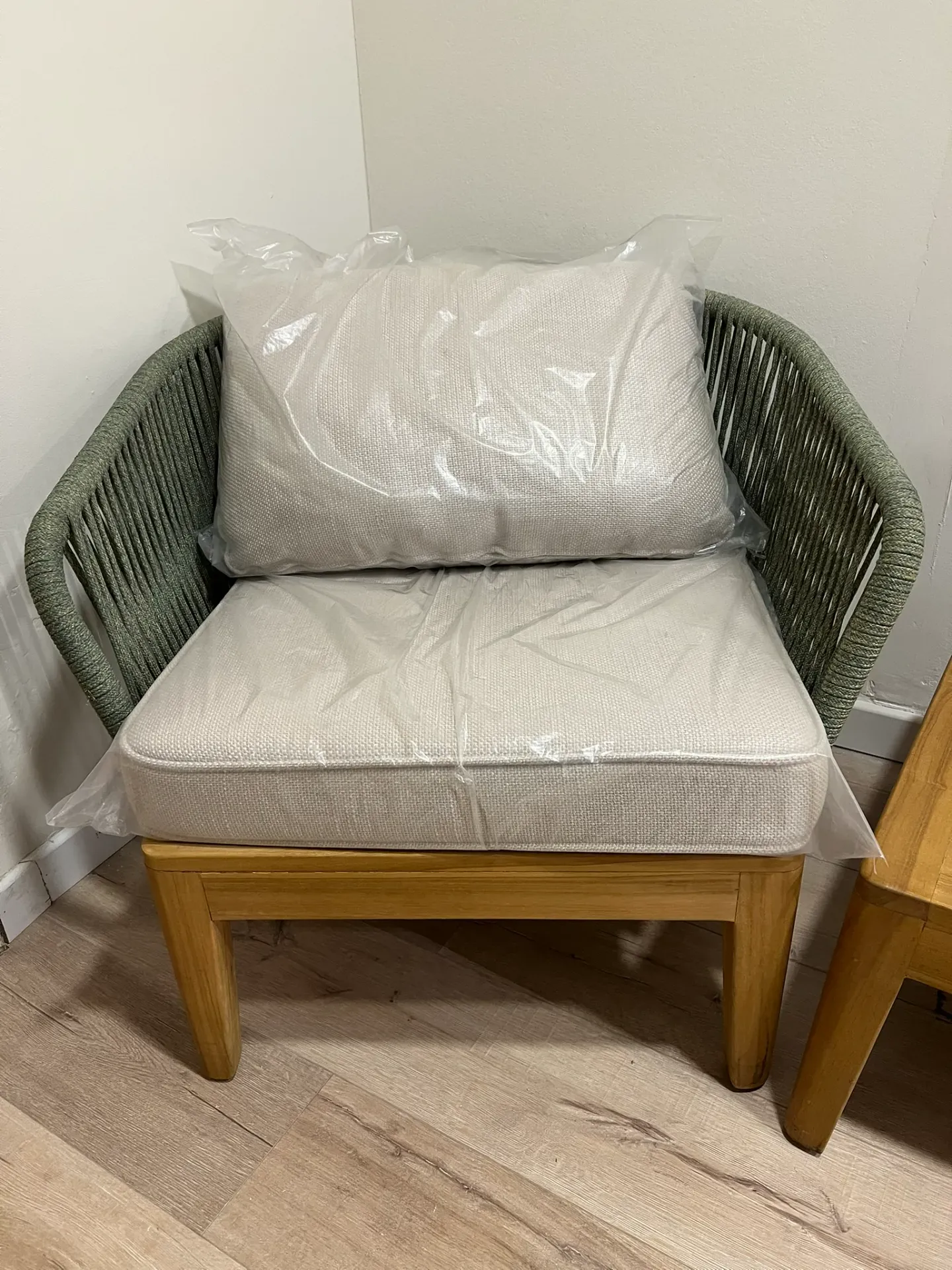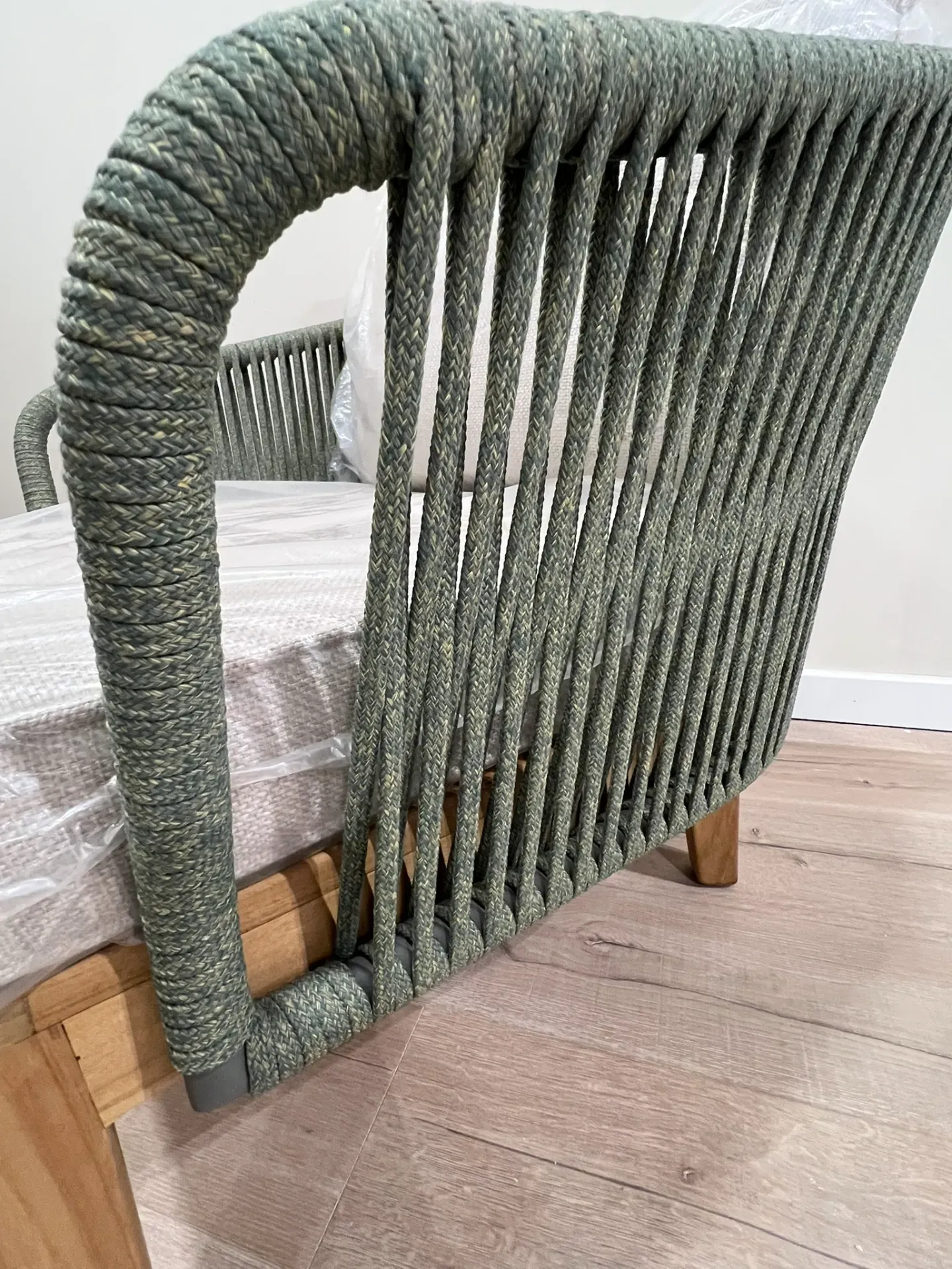 Il Divano e Poltrone della serie Dakota è realizzato con struttura in teak massiccio e intreccio manuale in speciale corda olefin/polipropilene di alta qualità . Il telaio dello schienale è in alluminio verniciato a polvere epossidica.