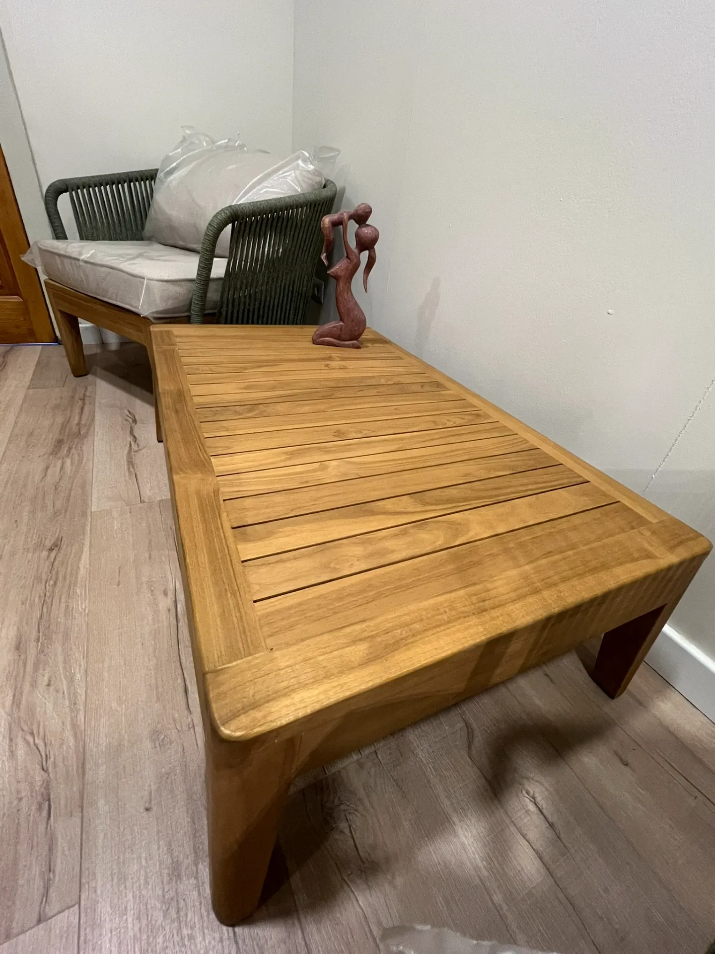 Il tavolino da salotto della serie Dakota è realizzato in teak massiccio in finitura naturale.