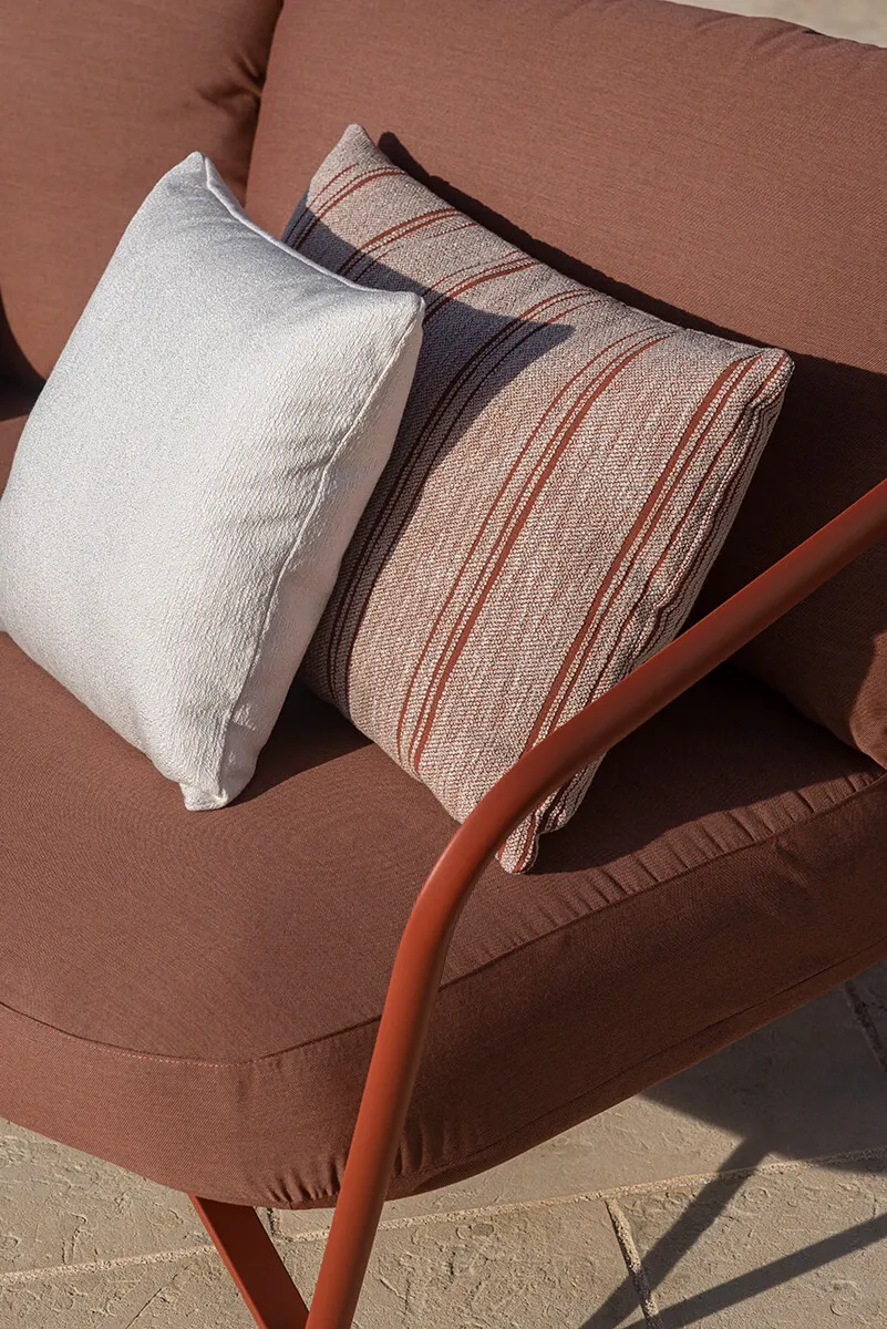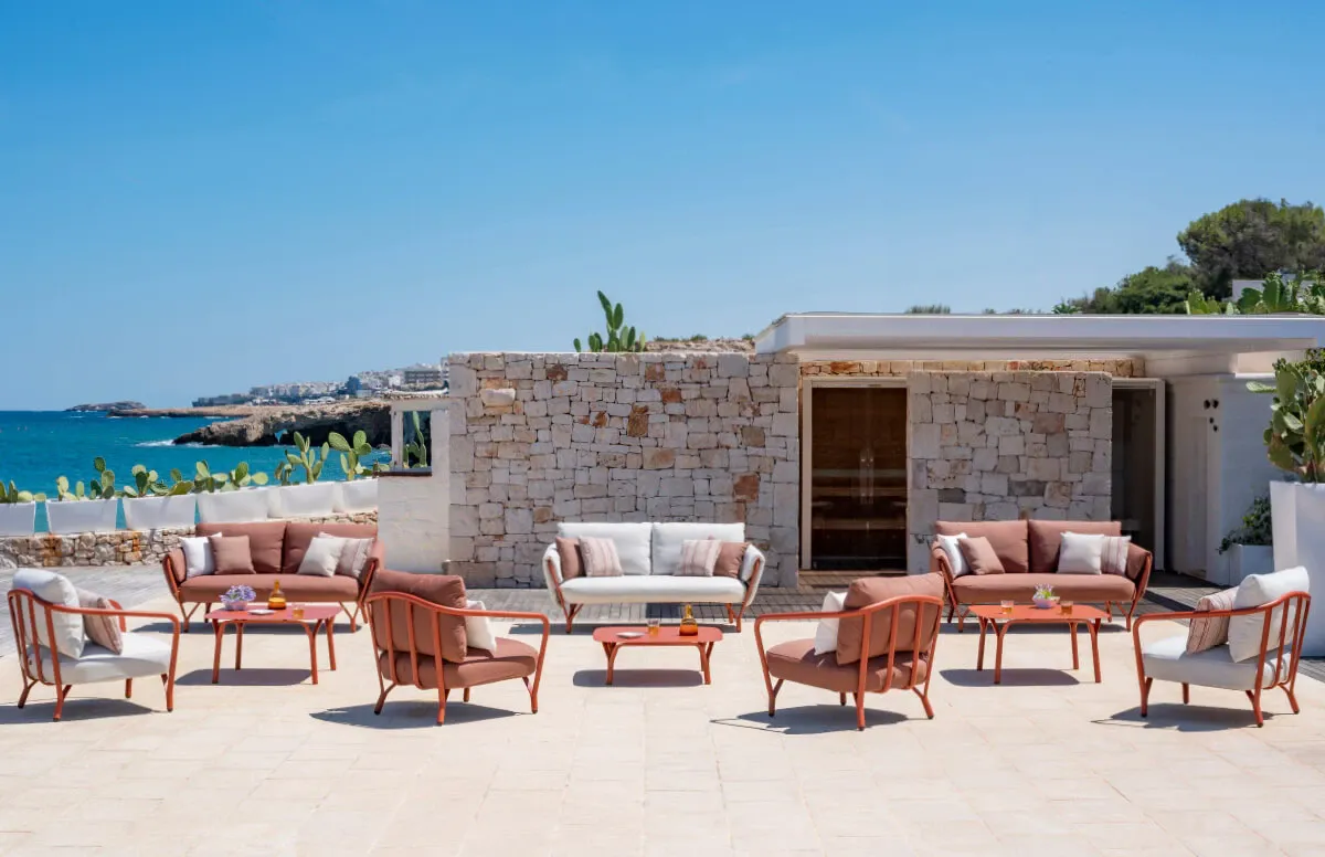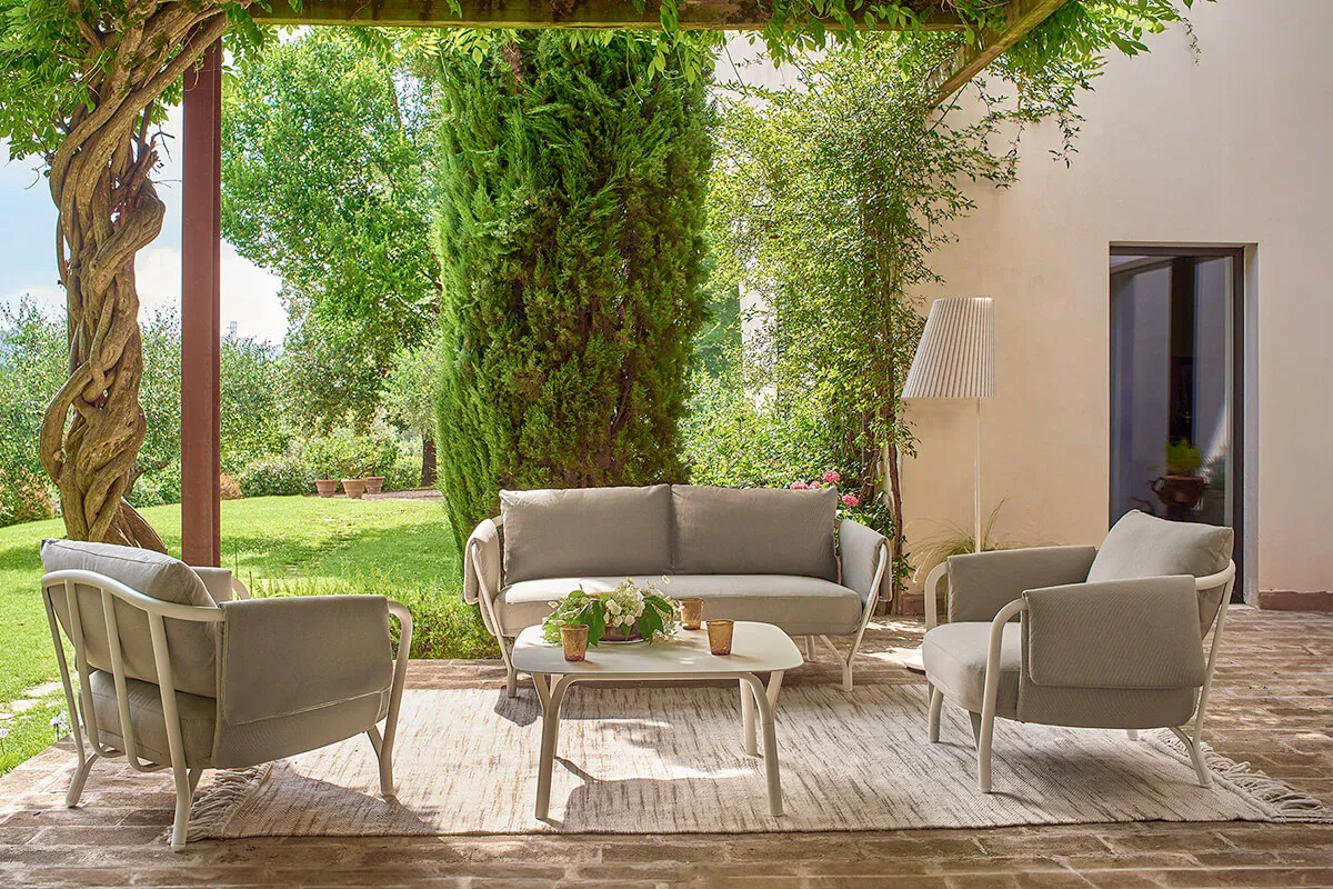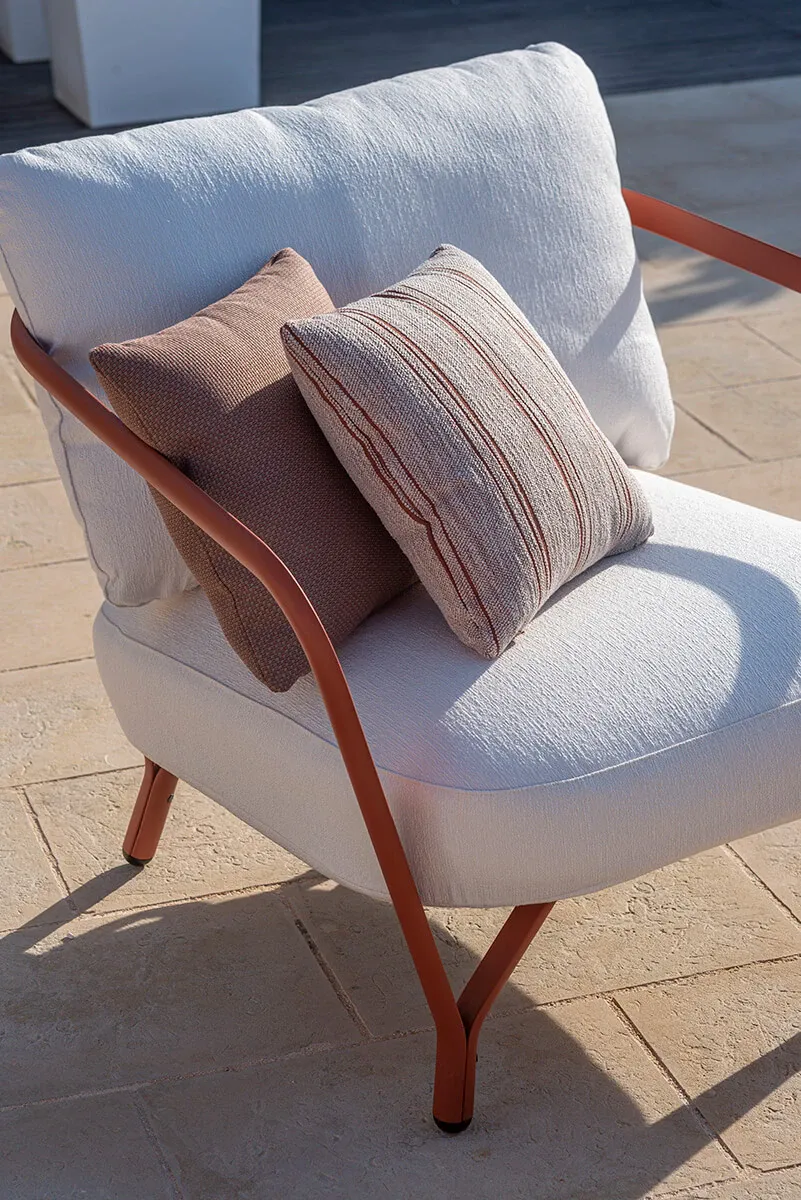 Angel, design Angeletti & Ruzza, è una collezione completa di sedute dining e lounge con cuscineria dedicata, a cui si aggiungono coffee table e tavoli di varie forme e dimensioni che possono ospitare fino a 8 posti. Design morbido e curve grafiche, comfort e struttura in alluminio, rendono Angel una linea perfetta per creare atmosfere conviviali anche in contesti marini.