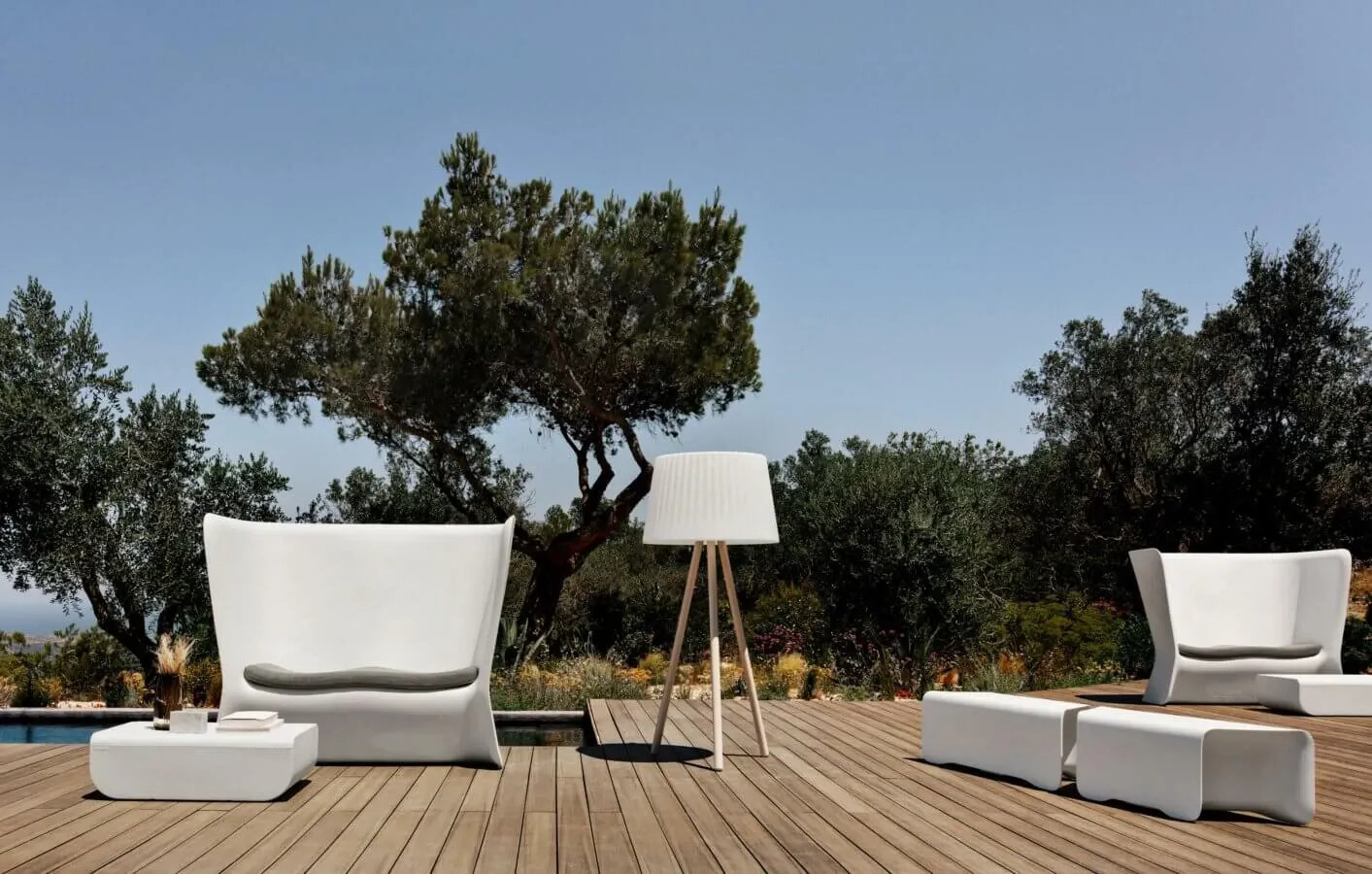 Mobili da giardino Nova di Myyour. Il set Nova è relativamente compatto ed è adatto anche a spazi più piccoli.