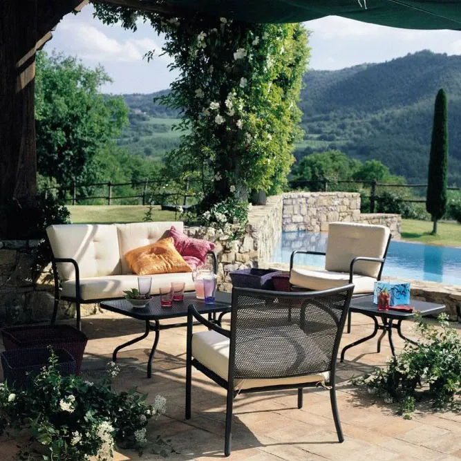 La collezione Athena in acciaio è caratterizzata da uno stile classico per un atmosfera conviviale ma ricercata. La sua lamiera intrecciata dona eleganza e carattere a questa famiglia di arredi che comprende sedute, tavoli e arredi lounge per ogni momento di relax all aperto.