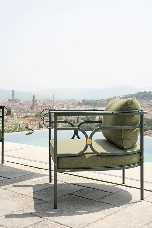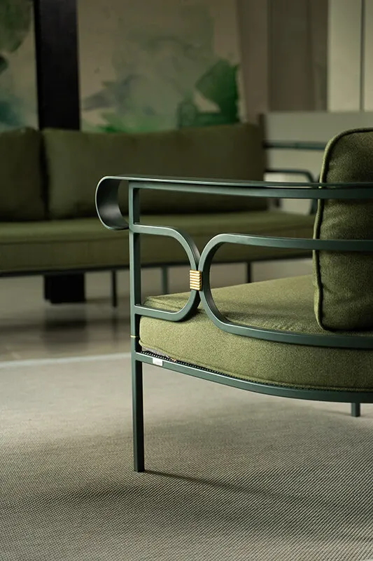 Il divano Collier da due posti, progettato da LCM Marin Design Studio, è una seduta dal design classico che si distingue per la sua eleganza senza tempo e le forme armoniose. I dettagli raffinati e i contrasti geometrici delicati richiamano suggestioni tradizionali, rendendolo una soluzione d arredo raffinato ideale per ambienti residenziali e spazi alberghieri. La struttura, realizzata interamente in tubolare squadrato di acciaio, conferisce solidità e carattere al divano, mentre la seduta in lamiera di acciaio stirata, arricchita da un pattern decorativo iconico, definisce la sua identità estetica distintiva. Come accessorio, è disponibile un cuscino imbottito per seduta e schienale, rivestito in un ampia gamma di tessuti adatti anche all uso esterno, per garantire comfort e praticità in ogni ambiente. Un fregio decorativo color ottone valorizza il divano Collier, così come tutti gli elementi della collezione. La sua forma avvolgente e accogliente trasforma ogni curva in un gesto di morbido comfort e ogni linea in un equilibrio armonioso tra estetica e funzionalità, rendendolo perfetto per chi cerca arredo di lusso e qualità duratura.