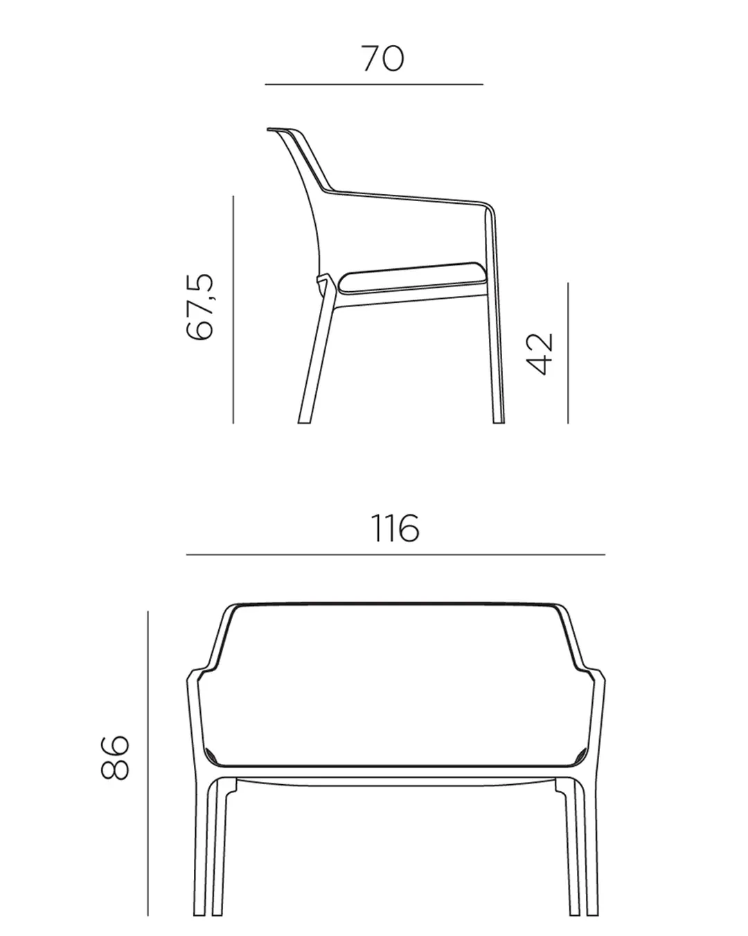 Misure divano 116 x 70 x h86 cm