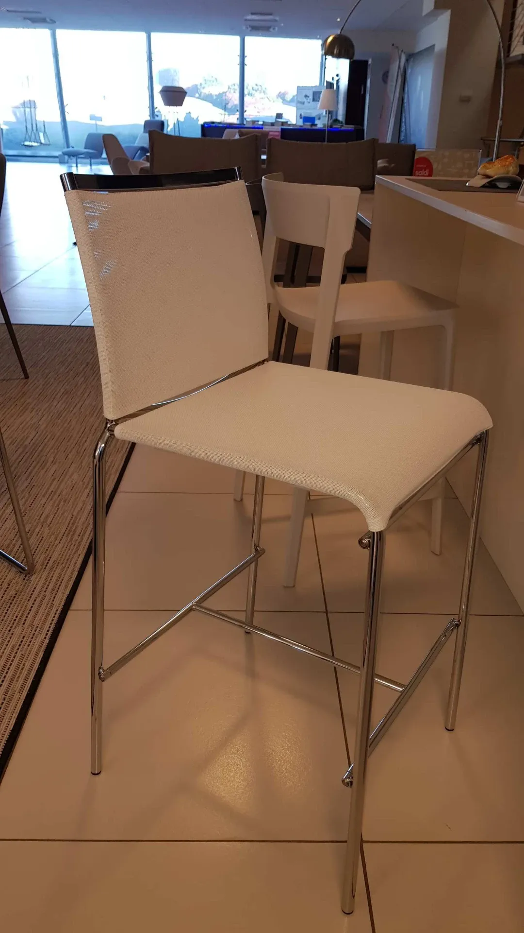 Sgabello Calligaris modello WEB CS/1458 struttura e schienale cromato P77, seduta joy bianco S70