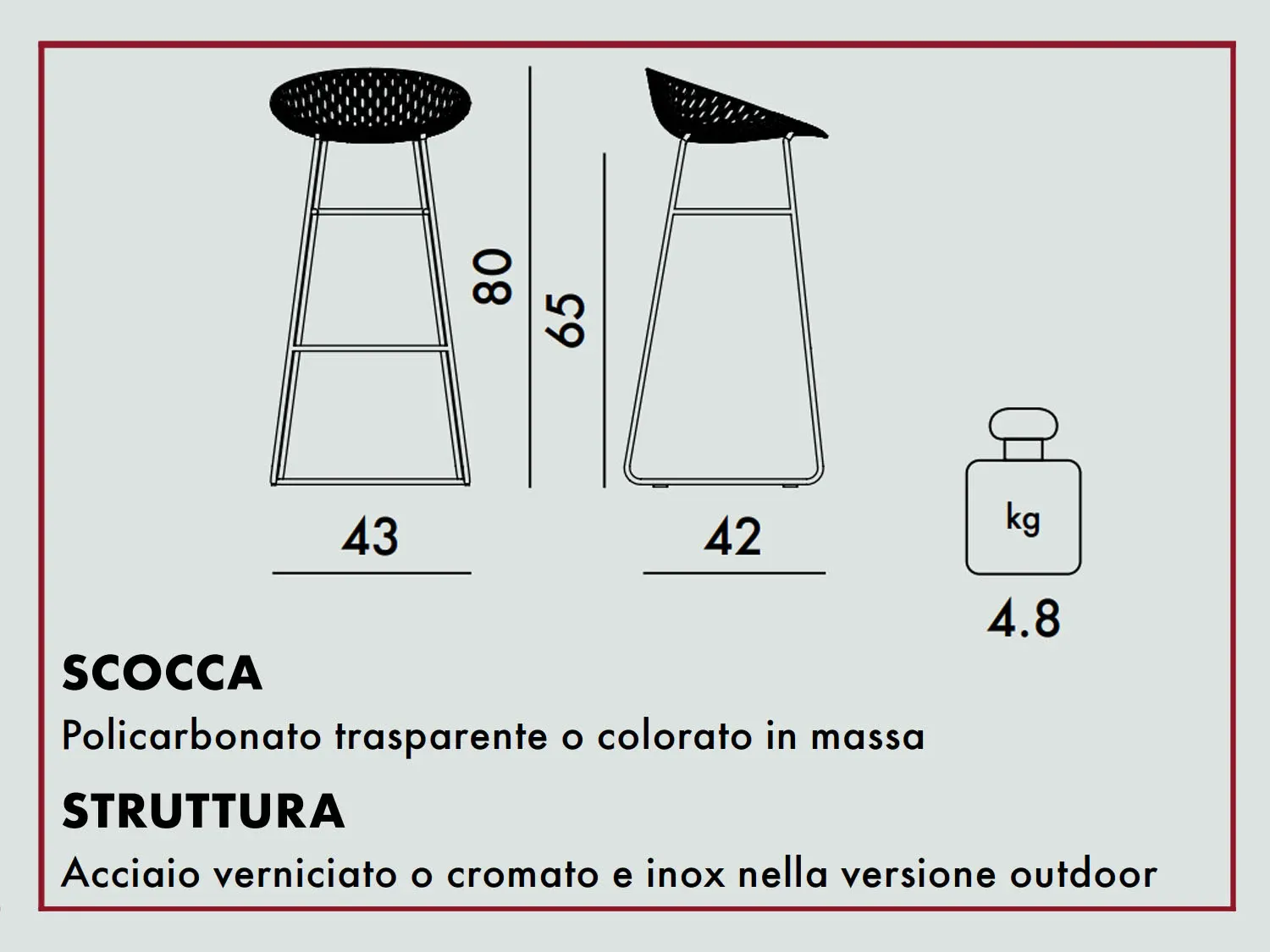 L43 X P42 X HS65 X H80 CM