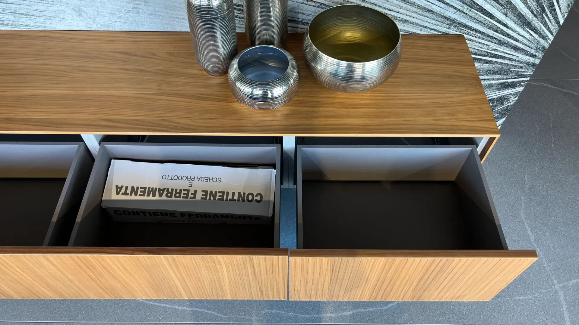 BASE COMPOSTA DA CASSETTONI IN LEGNO NOCE EFFETTO DOGATO P.46