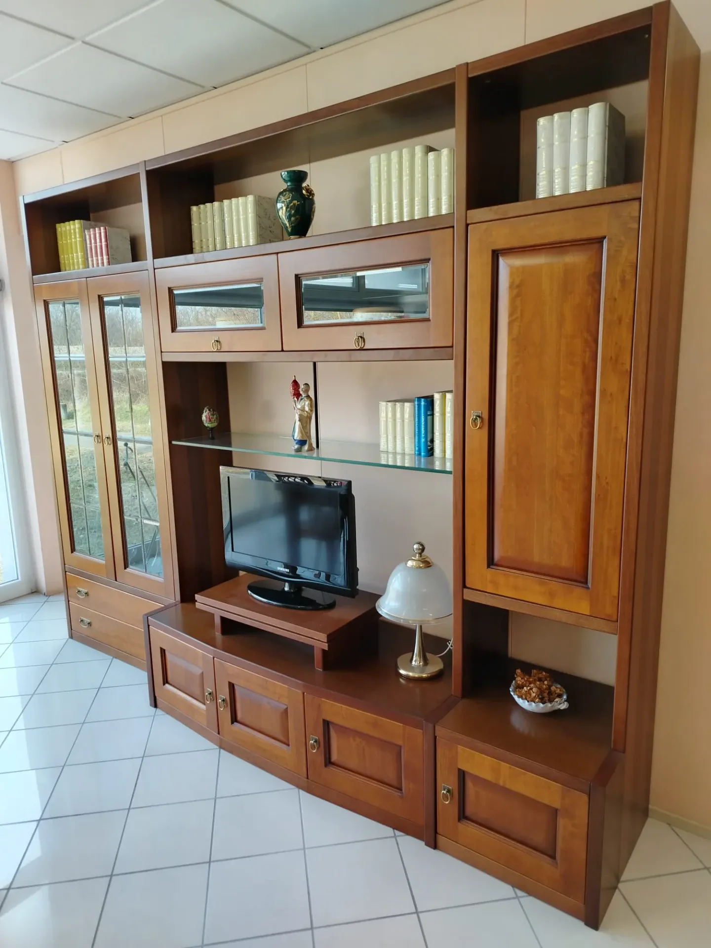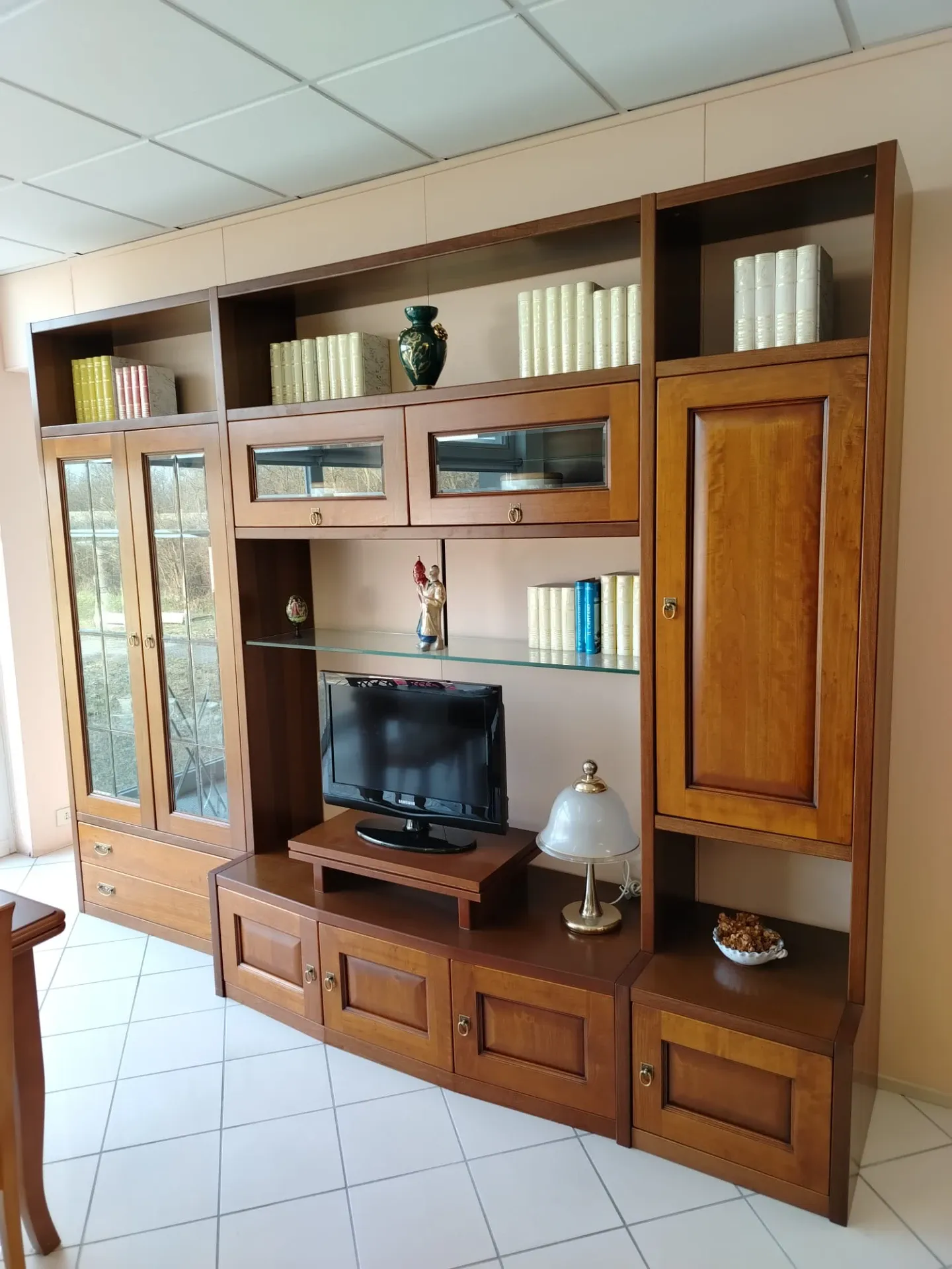 Se vuoi una composizione completa per il soggiorno e sei un amante delle finiture in **legno**, opta per il modello **Asolana**: ti attende a prezzi outlet.