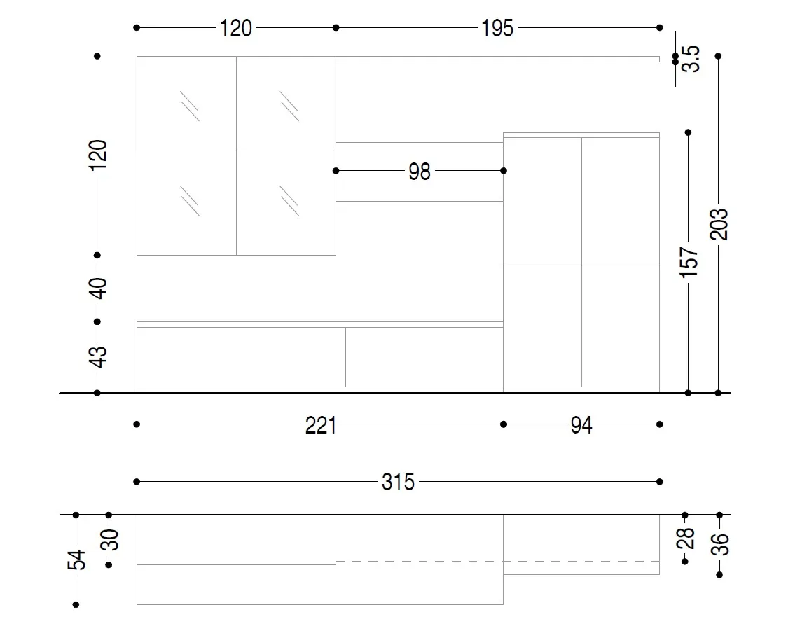 Splendido soggiorno completo MobilTrevi, mod. Borgorio, caratterizzato da linee pulite e un design intramontabile.