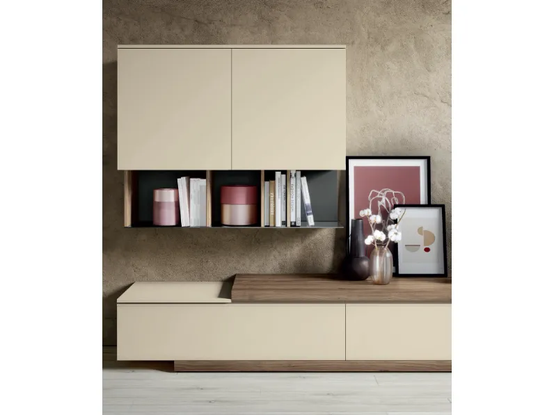 Questa proposta fa parte della nostra collezione di soggiorni completi con mobili push–pull del marchio Colombini casa, ideali per spazi di ogni genere.