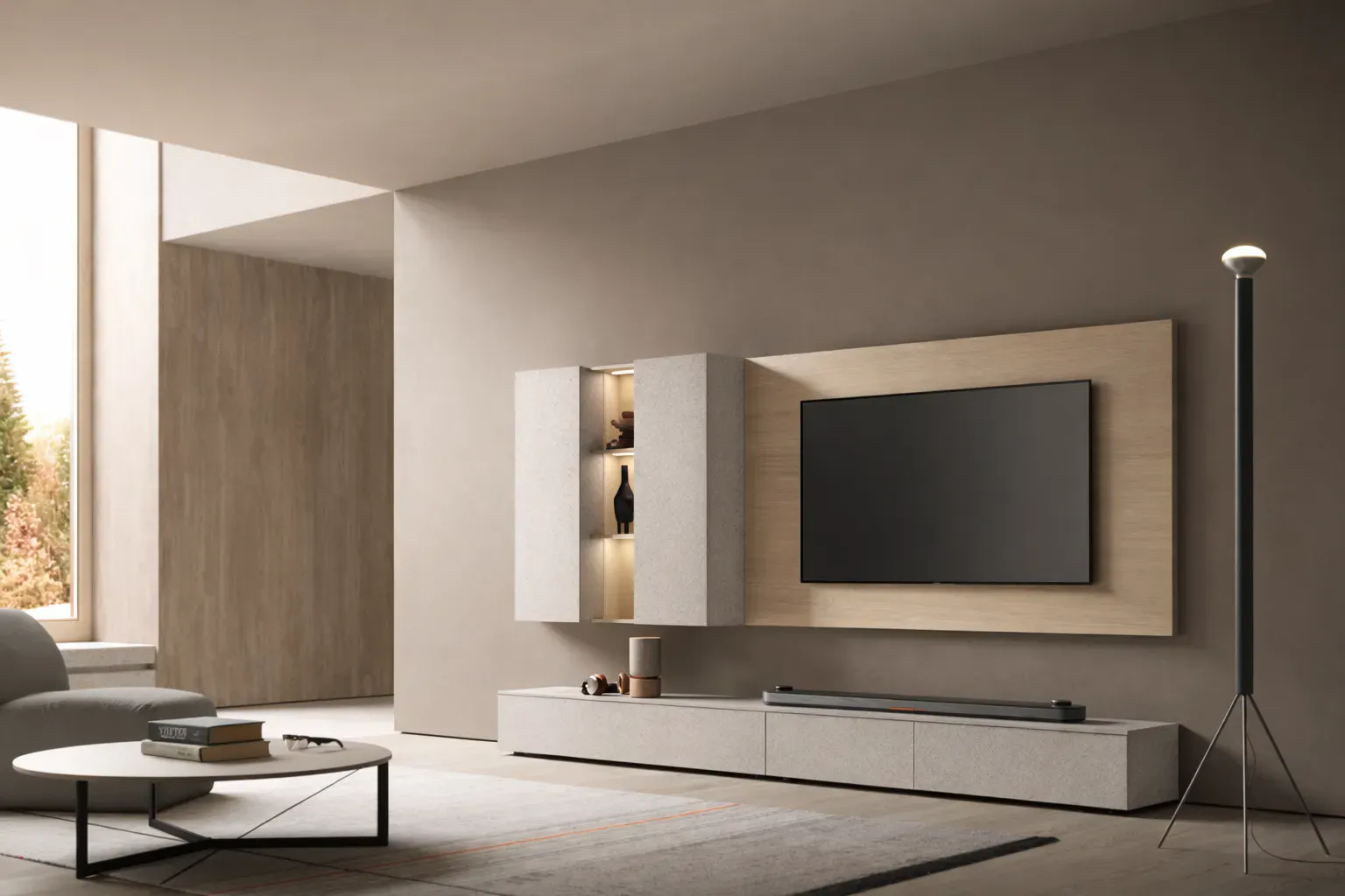 Parete soggiorno Tomasella dal design contemporaneo e raffinato, proposta da Arredamenti Baraggia, ideale per ambienti moderni che ricercano eleganza, equilibrio e dettagli materici. La composizione si sviluppa con una base lineare a terra abbinata a elementi sospesi, creando un insieme armonioso e visivamente leggero.