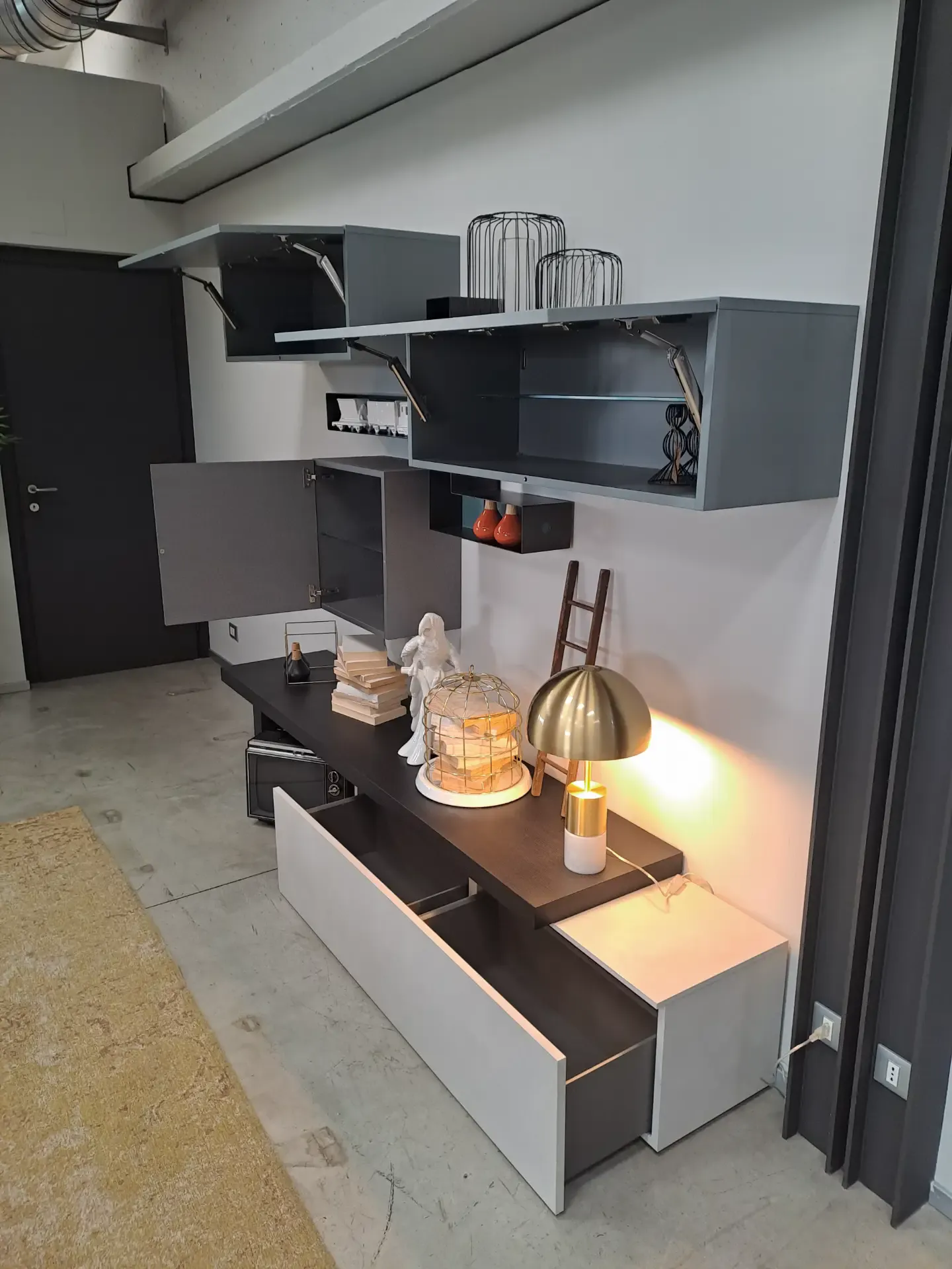 Questa soluzione appartiene alla nostra collezione di soggiorni completi con arredi senza maniglia del marchio Tomasella, ideali per spazi di ogni tipo.