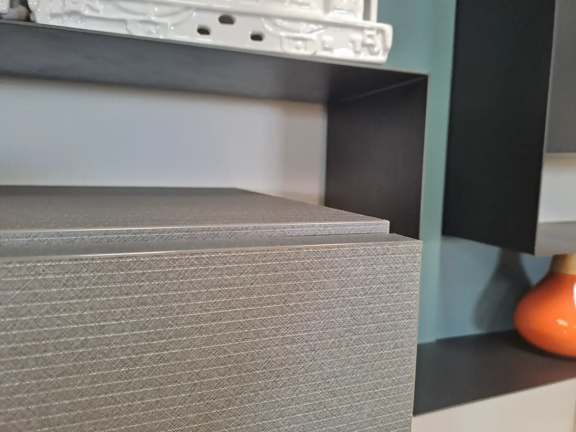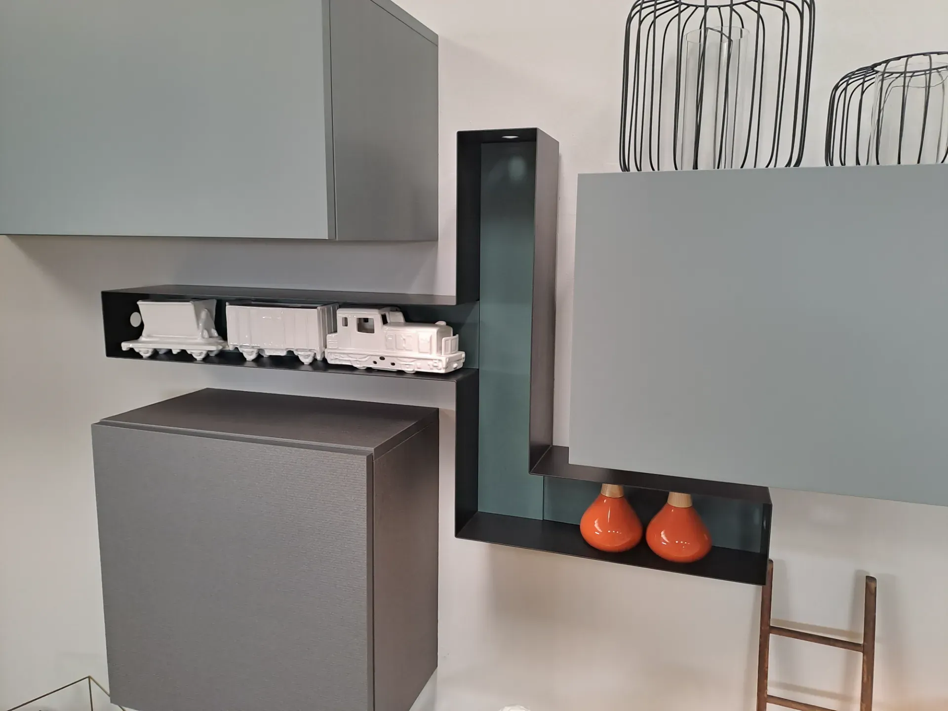 ELEMENTO GEOMETRICO IN METALLO CON SCHIENA LACCATA POSIZIONATO TRA I PENSILI
