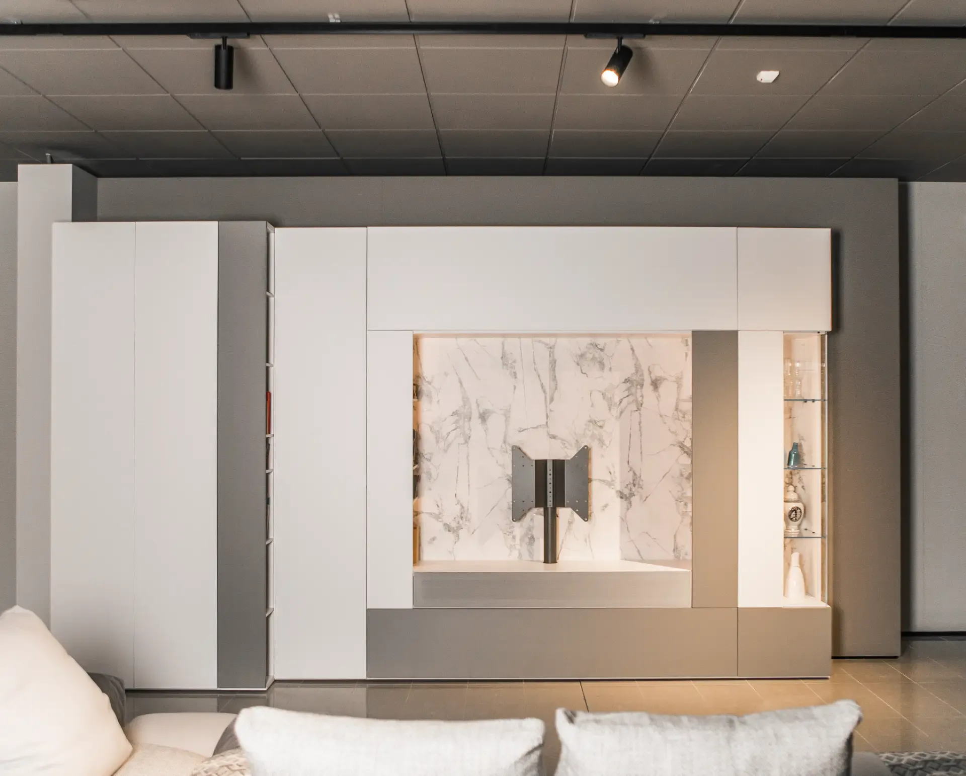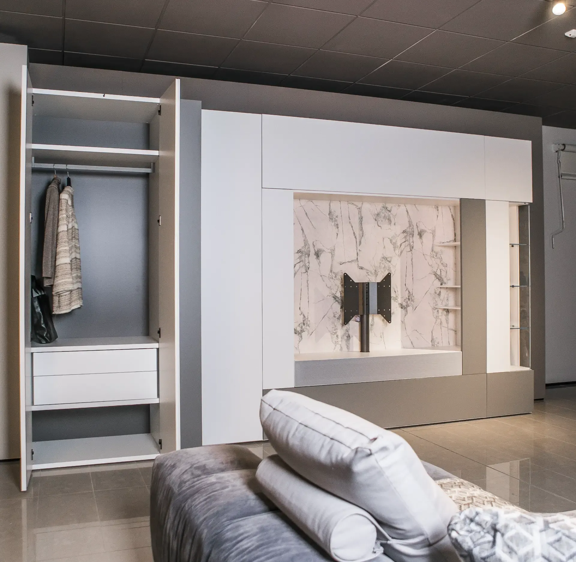 Arreda il tuo soggiorno con una delle nostre composizioni di mobili e complementi push–pull: il soggiorno completo Composizione roomy e core con modulo tv ti aspetta a prezzo ribassato.