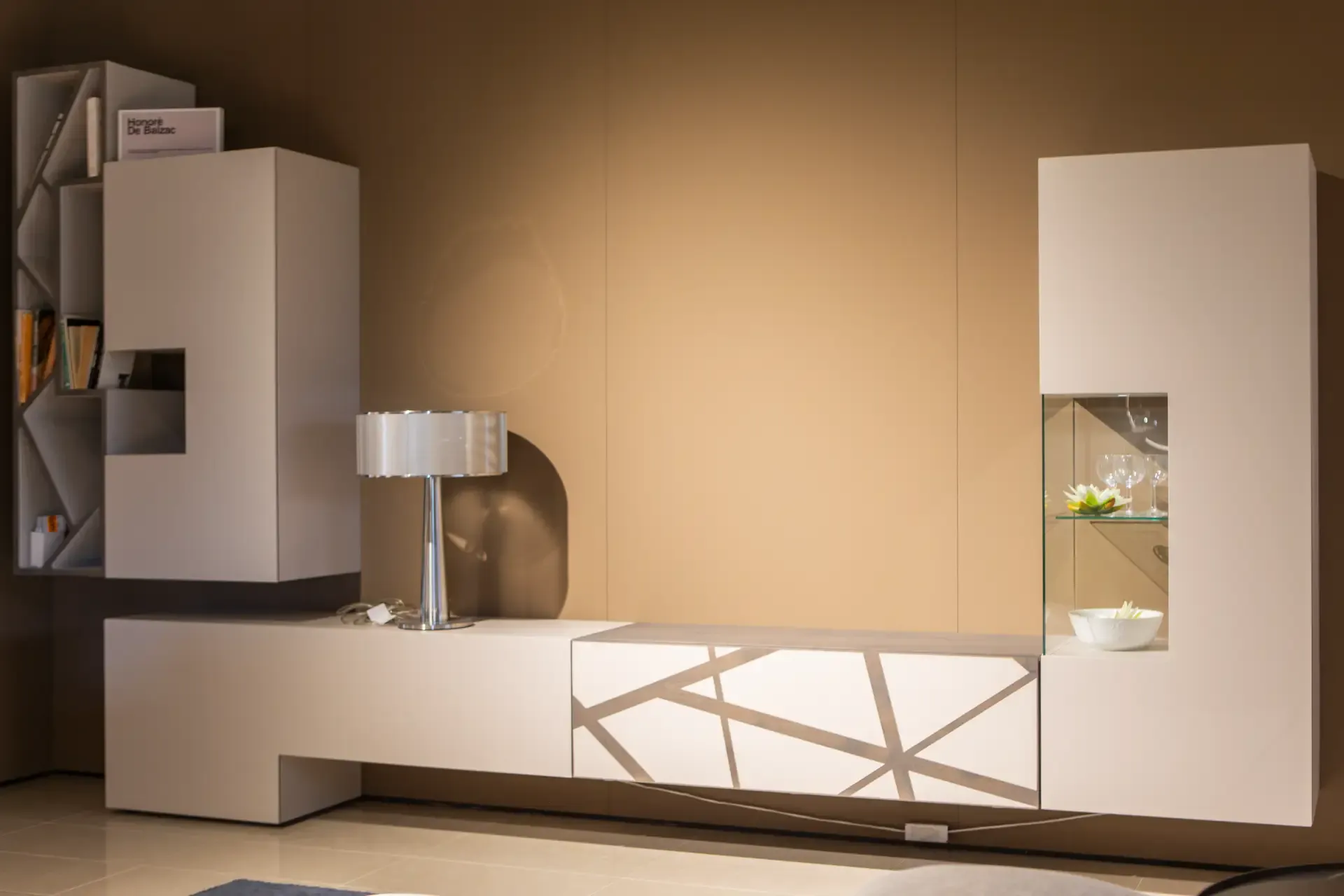 La composizione 555 appartiene alla nostra gamma quasi infinita di mobili ed elementi accessori in laccato opaco di Voltan, uno dei materiali più amati nel settore arredamento.