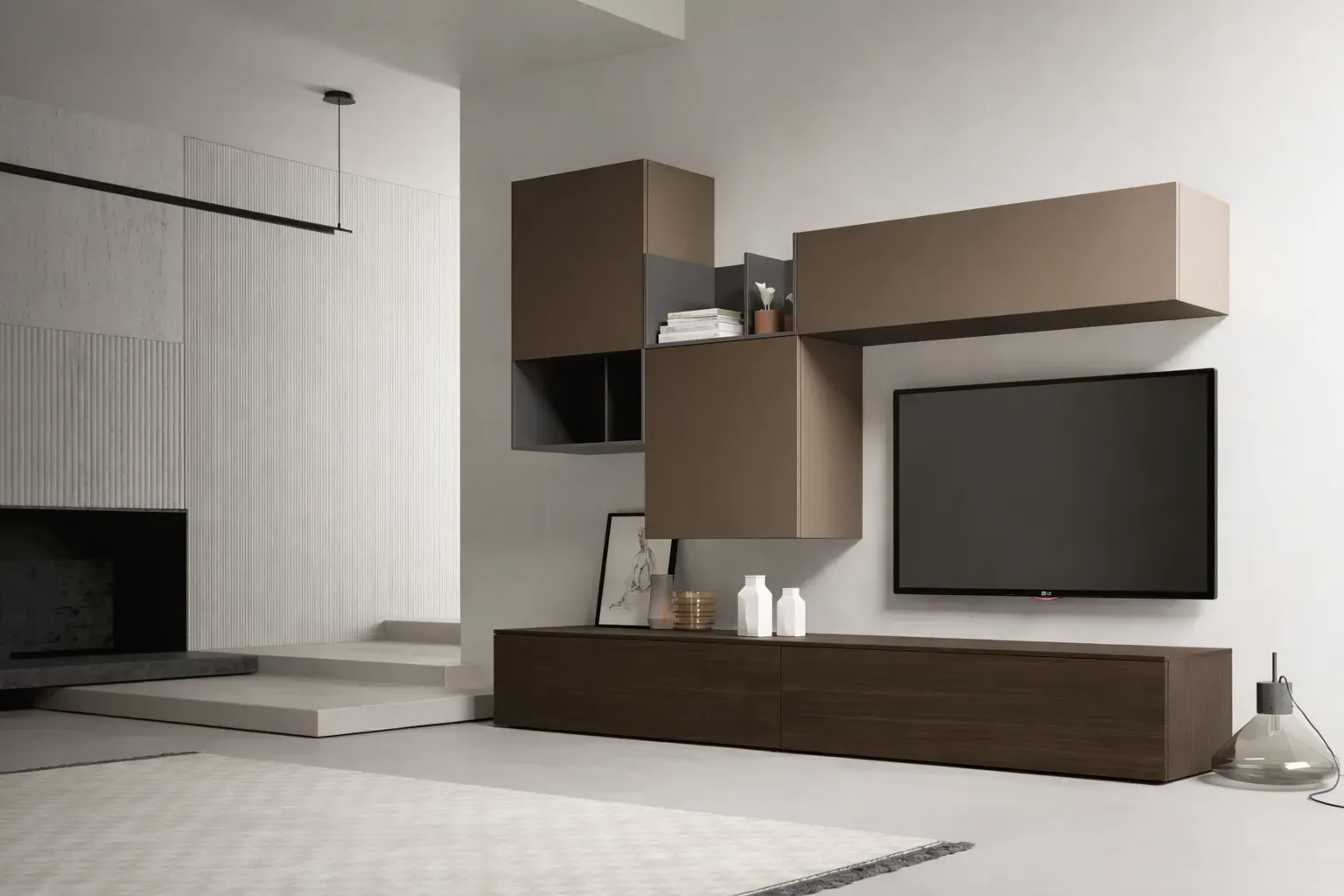 Parete soggiorno Tomasella dal design contemporaneo e strutturato, proposta da Arredamenti Baraggia, ideale per ambienti moderni che cercano una soluzione scenografica e altamente funzionale. La composizione si distingue per l alternanza di volumi pieni e vani a giorno, creando un equilibrio dinamico tra contenimento ed esposizione.