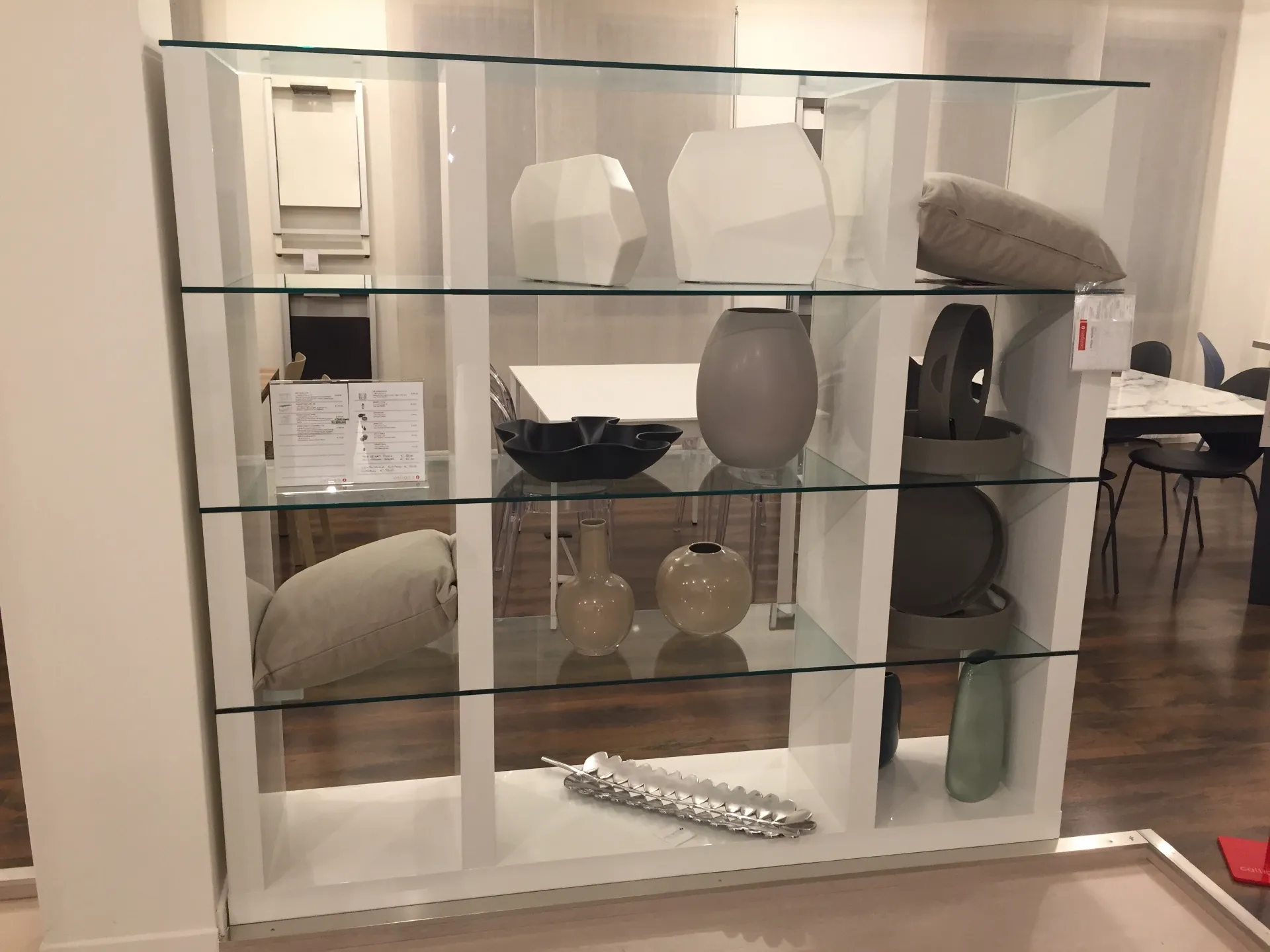 Libreria costituita da fianchi in legno laccato lucido bianco con ripiani in vetro temperato trasparente. È possibile posizionarla contro parete o centro stanza come divisorio essendo finita su tutti i lati. Dimensioni L.cm. 188 p.cm.40 h.cm.171 Siamo SHOP ufficiale Calligaris per la provincia di Como, è possibile ordinare tutti gli articoli del catalogo Calligaris a prezzi speciali. Contattaci per un preventivo personalizzato!