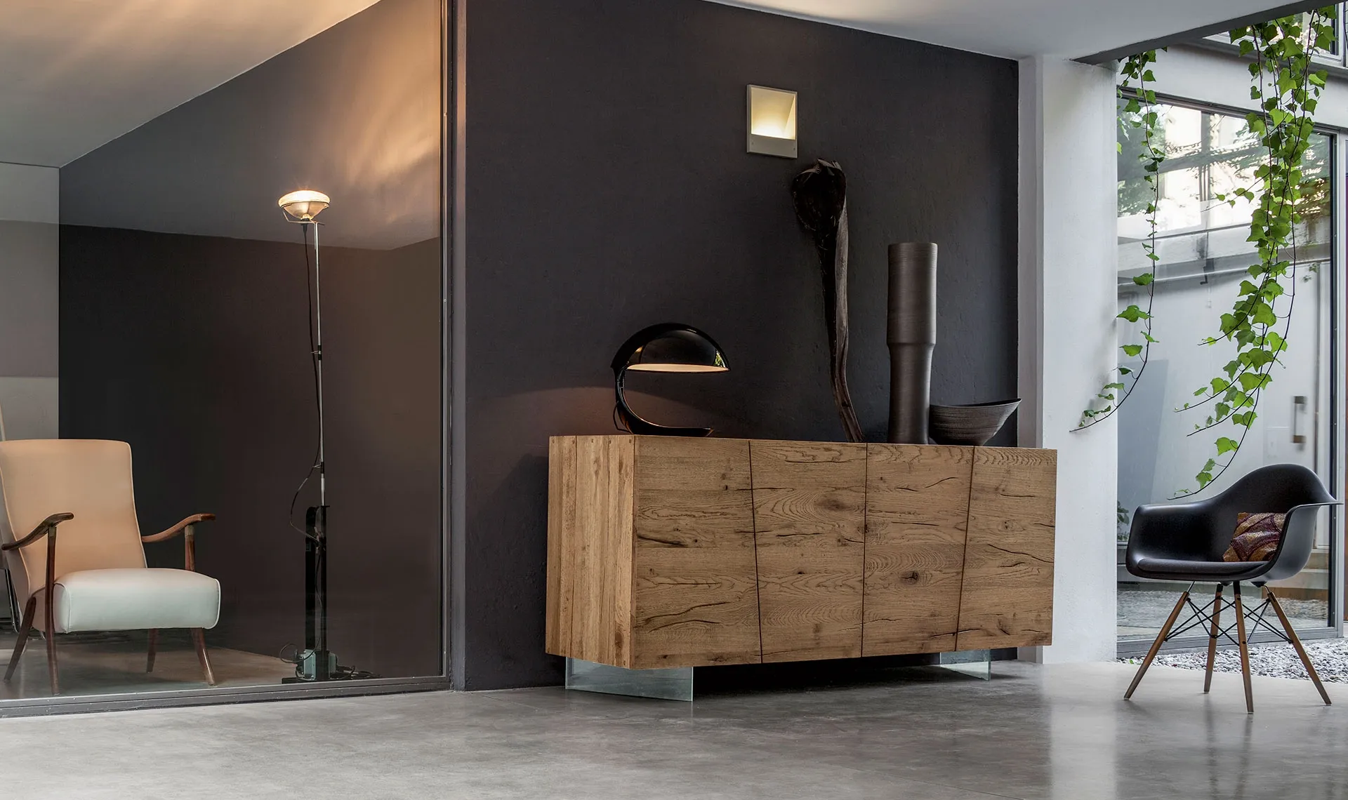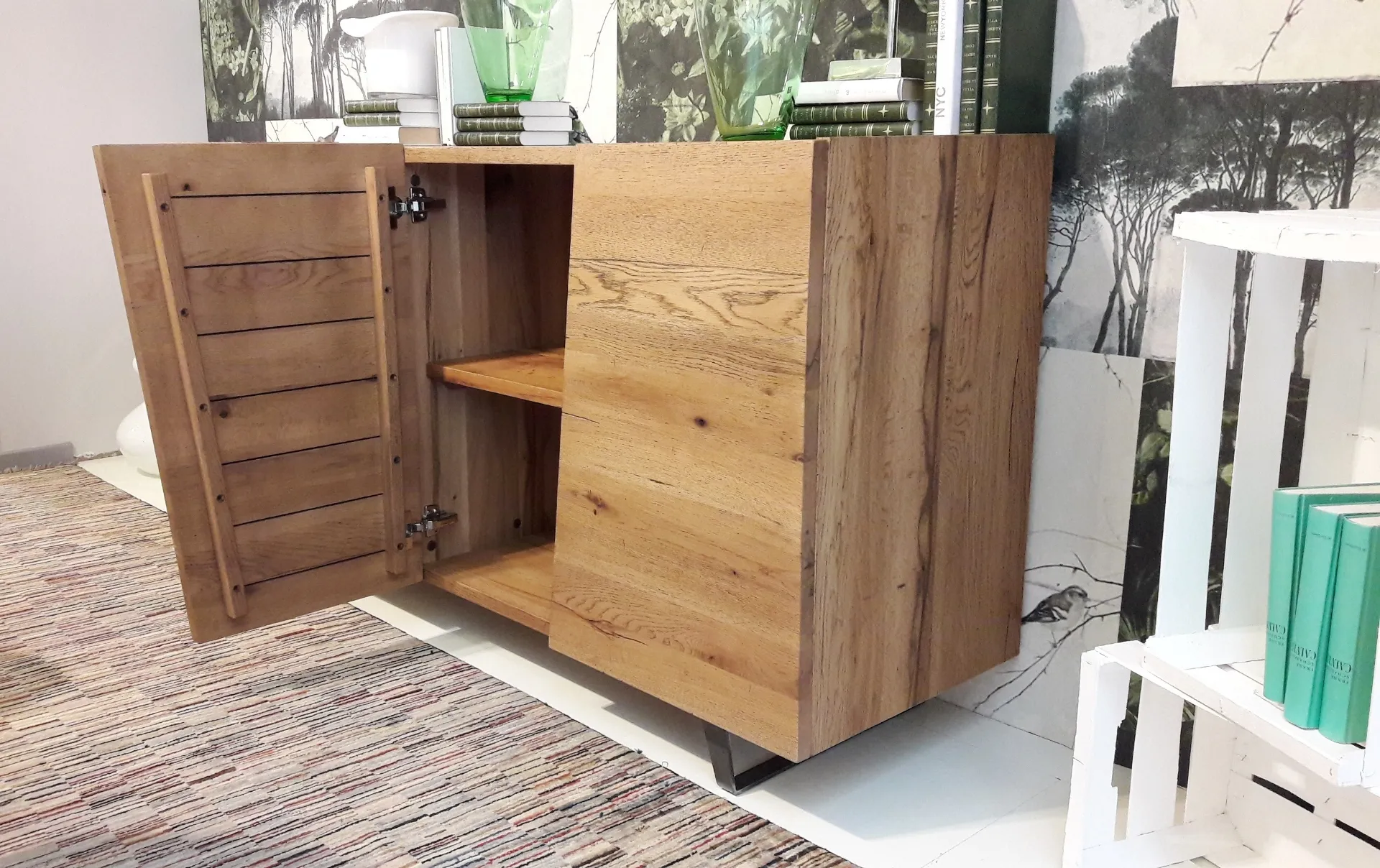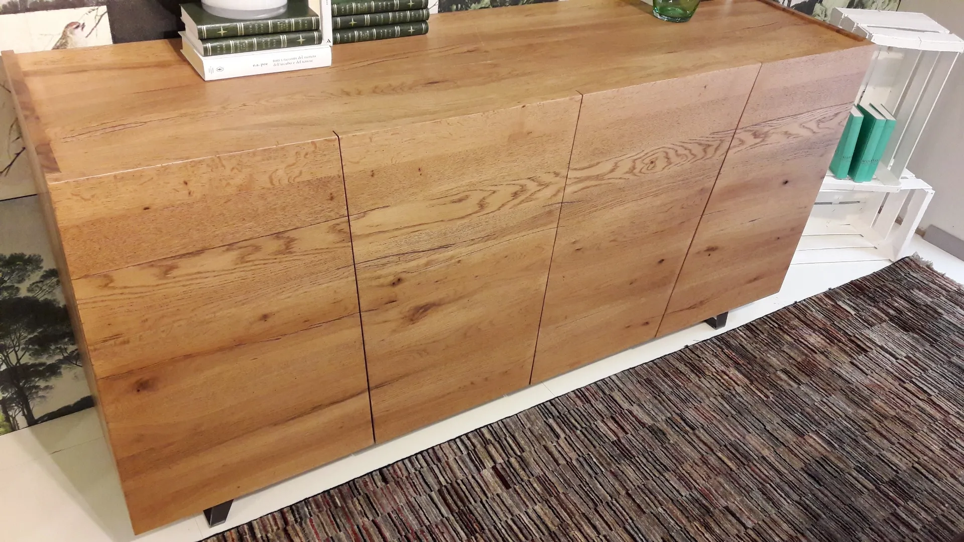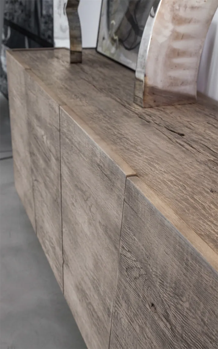 L.180 P.50 H.87 compresi piedini in ferro H.12. E' possibile averla in vari colori, con o senza piedini. Credenza attualmente esposta nella versione delle prime 4 foto ovvero rovere invecchiato, presso il nostro showroom in abbinamento al tavolo Master: contattaci per prenotare una consulenza gratuita di un nostro arredatore